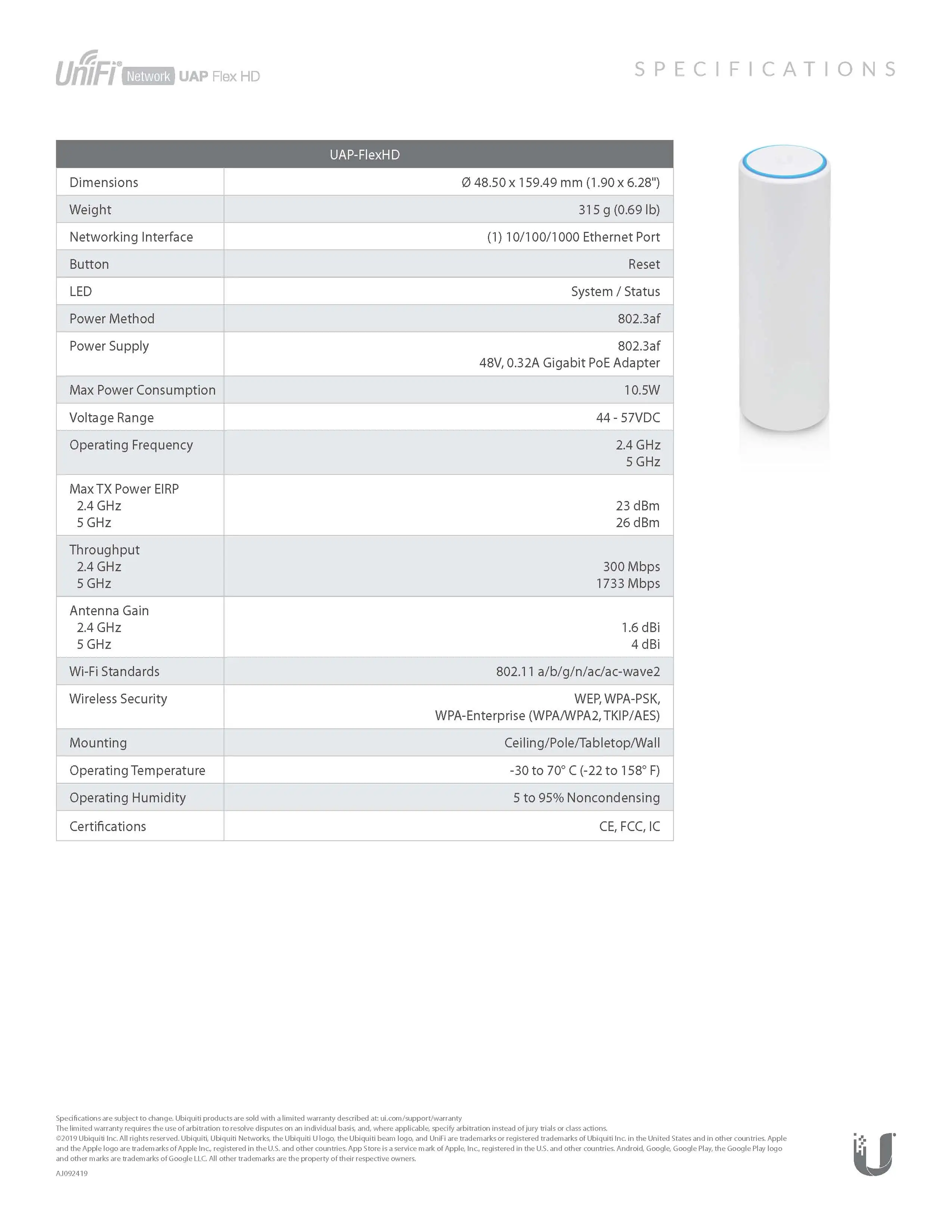 Ubiquiti UAP-FlexHD Networks UniFi 802.11ac Wave 2, 5GHz 1733Mbps, 2.4GHz 300Mbps, Wi-Fi Access Point