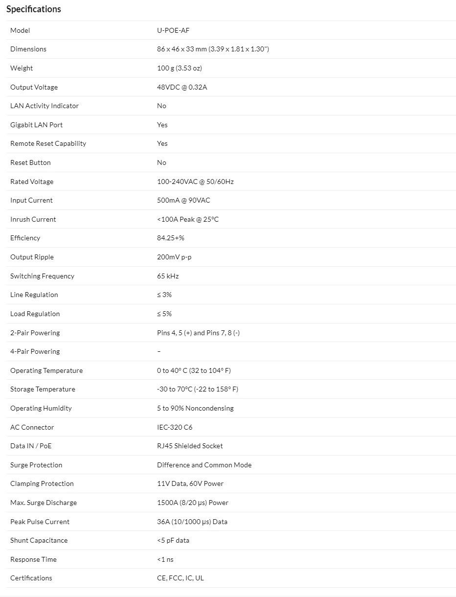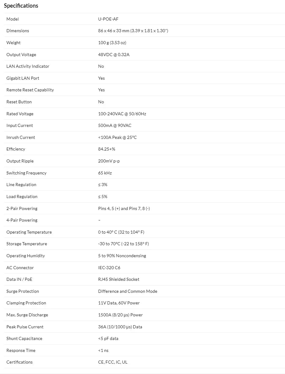 The UBIQUITI U-POE-AF UniFi PoE Adapter An adapter that can power UniFi PoE devices with wireless mesh applications, or offload PoE is the product you didn't think you need, but once you have it, something you won't want to live without.