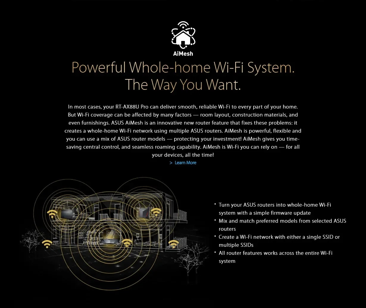 Better Partner with Mesh System- Compatible with ASUS AiMesh WiFi system for seamless whole-home coverage.