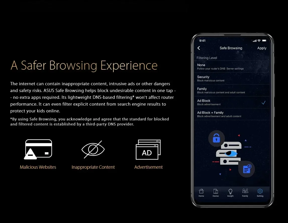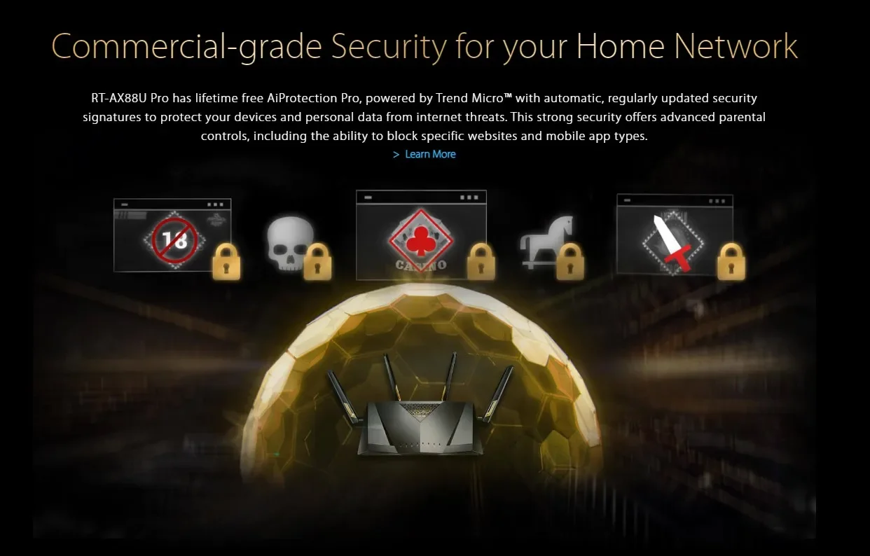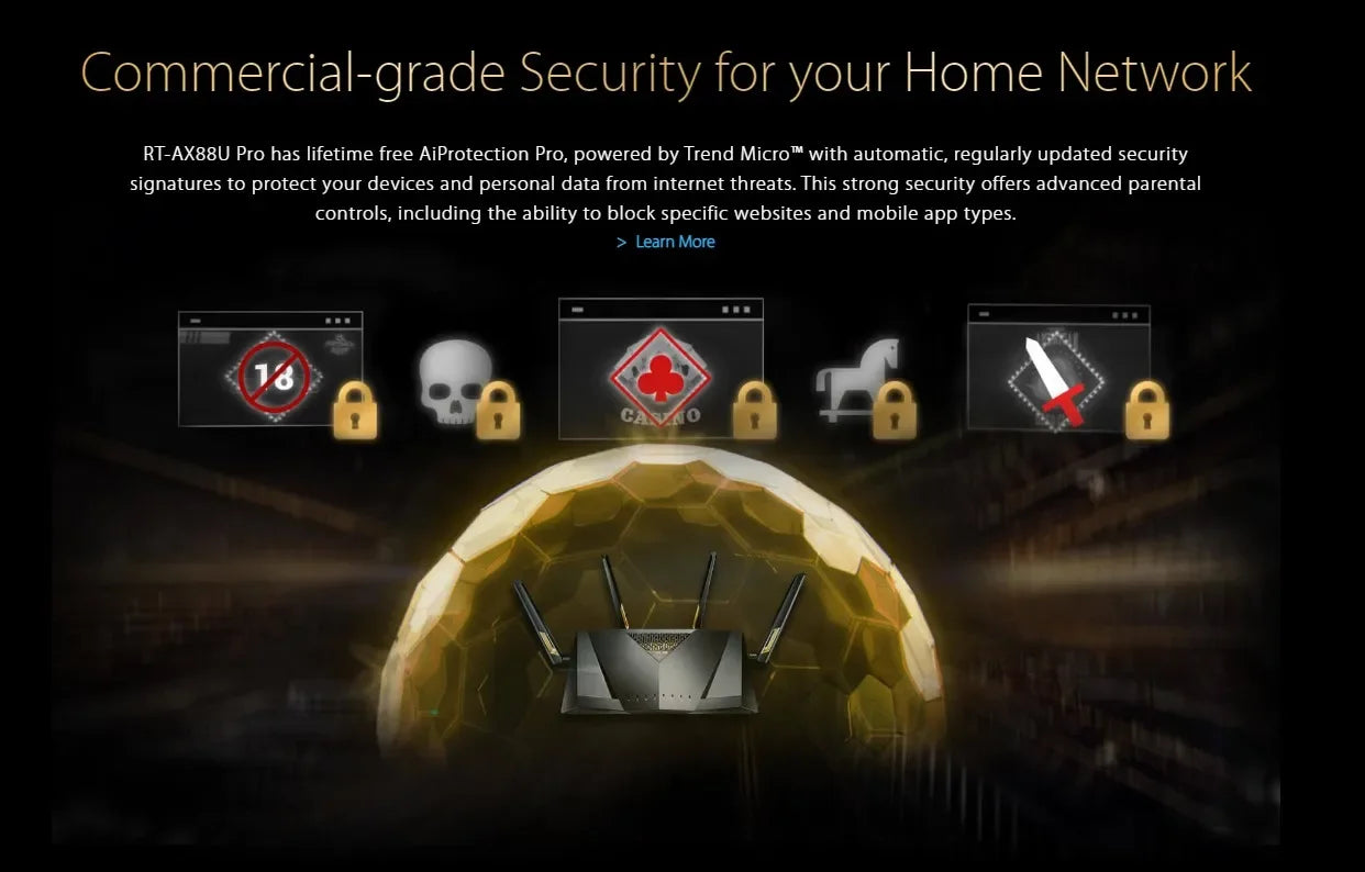 Commercial-grade Security- AiProtection Pro, powered by Trend Micro, blocks internet security threats for all your connected smart devices.