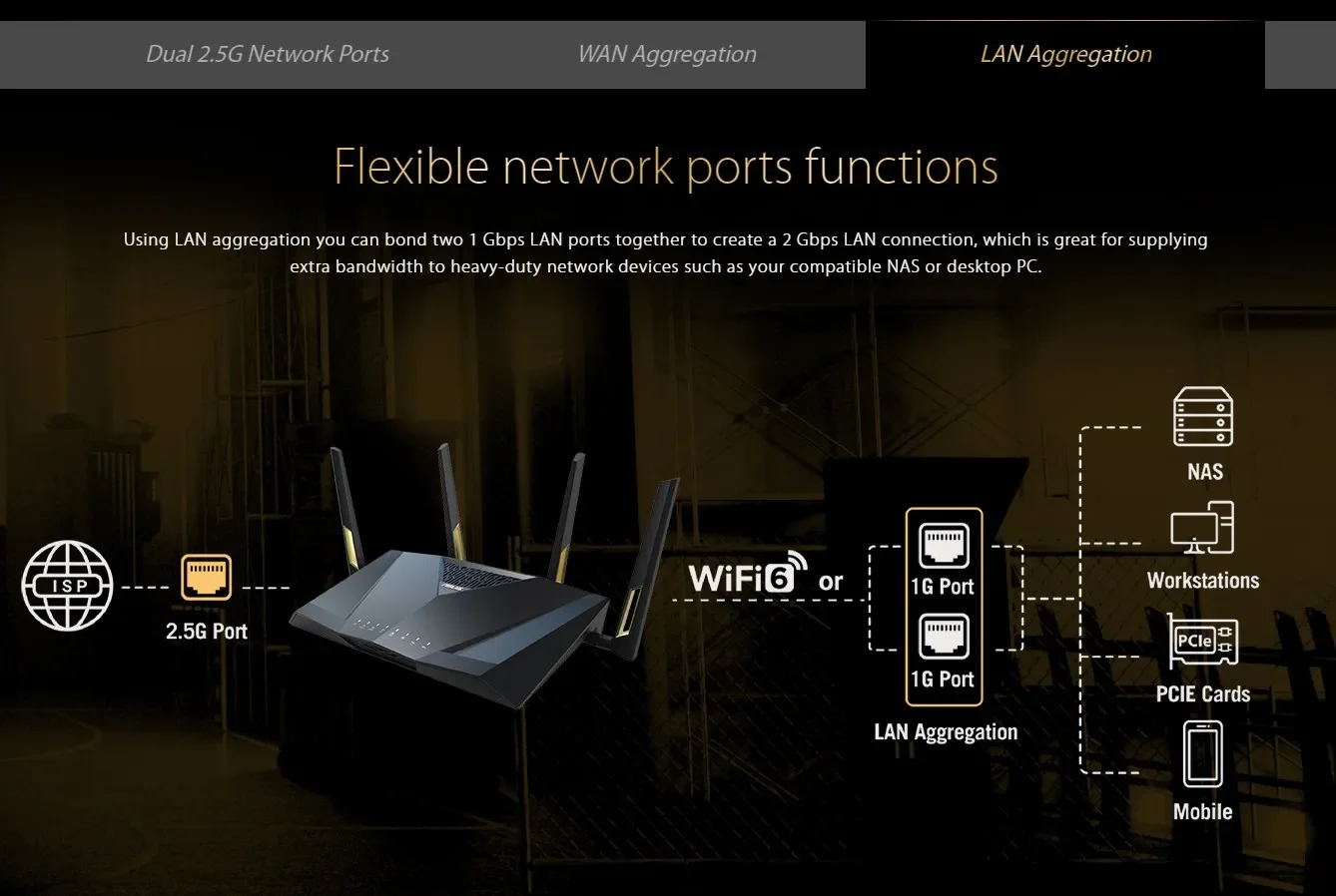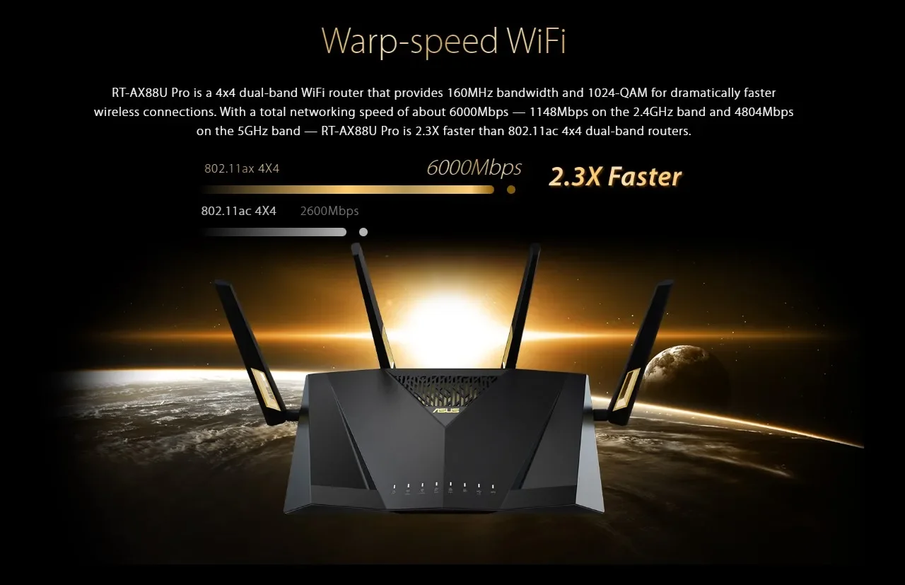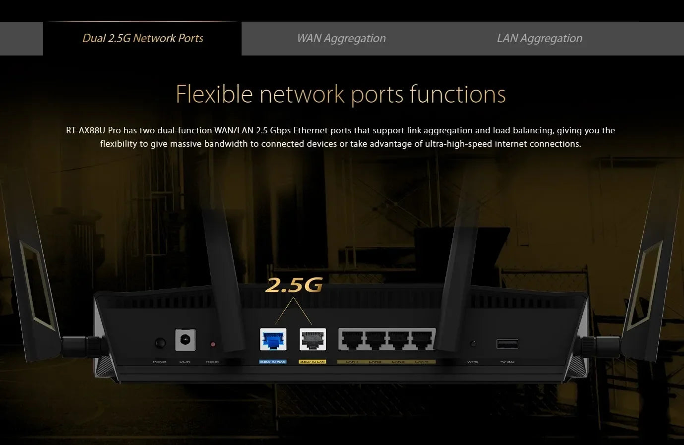 ASUS WiFi 6 Router RT-AX88U PRO AX6000 6Gbps Dual 2.5G Ports Dual Band MU-MIMO&OFDMA AiMesh For Whole-Home & AiProtection