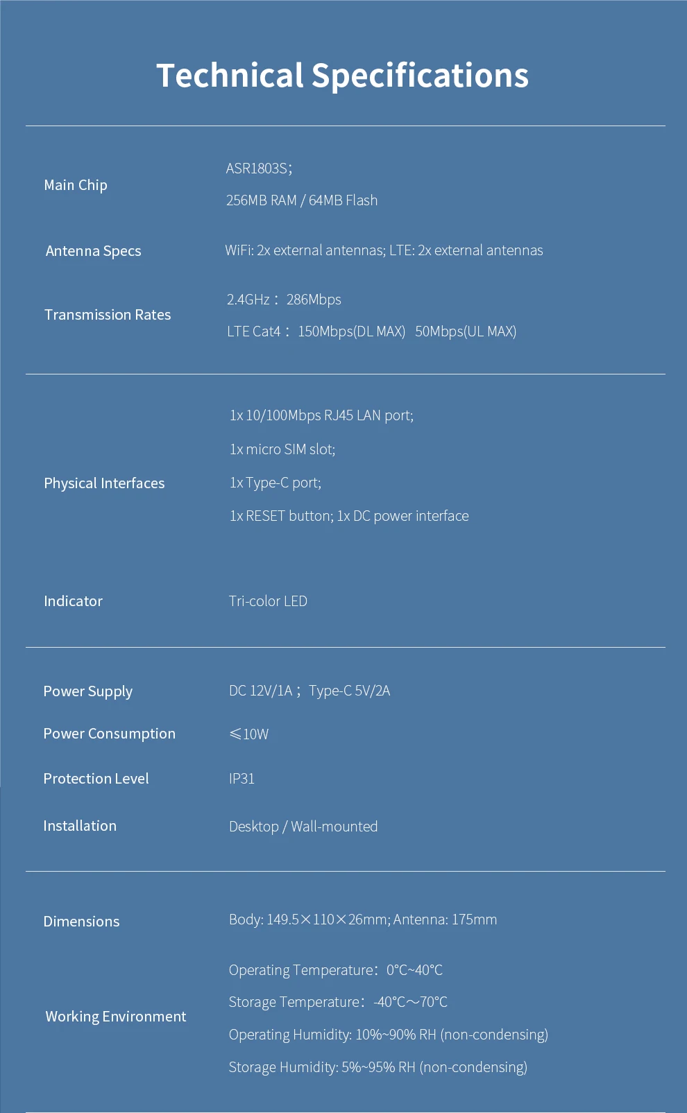 *Supports up to 150Mbps downlink speed and meets diverse network needs in all aspects;
