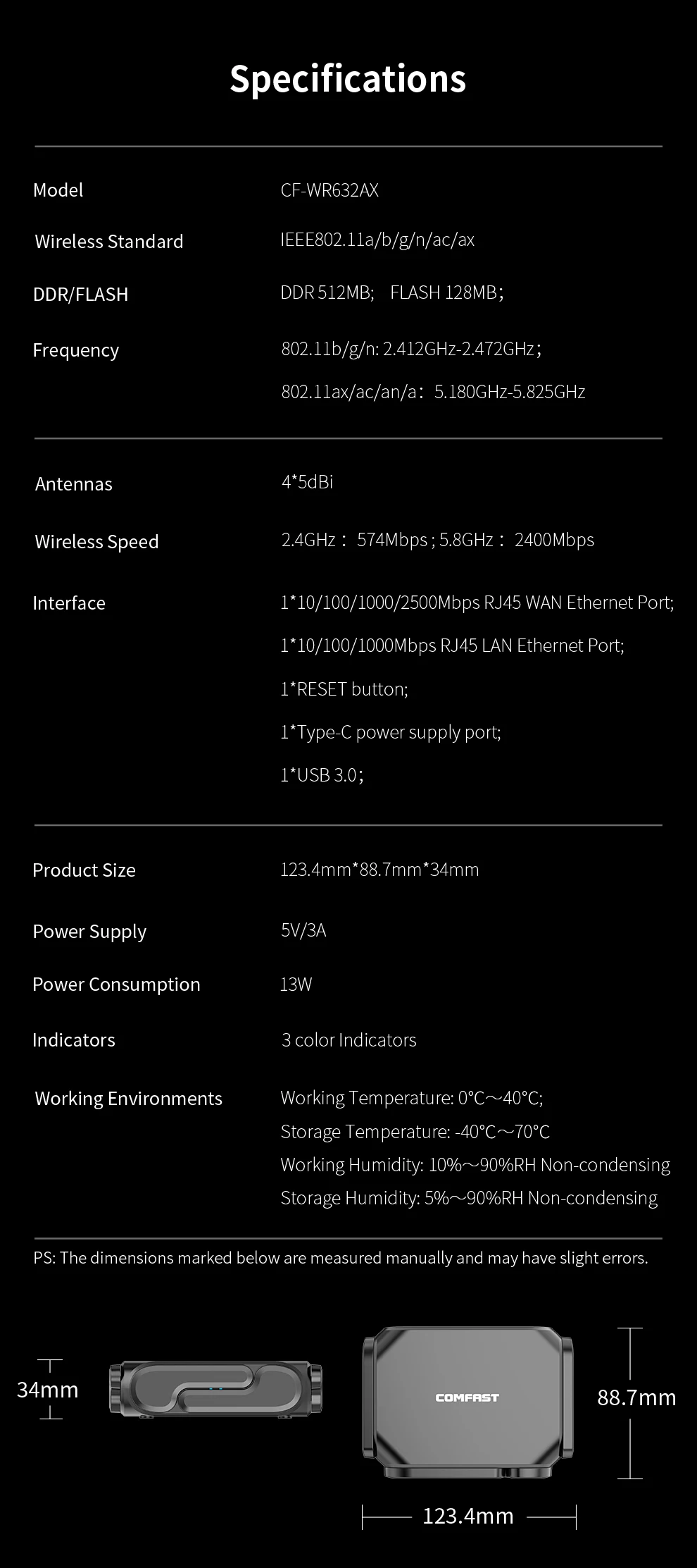 5. Wireless Standard: Supports IEEE802.11a/b/g/n/ac/ax;