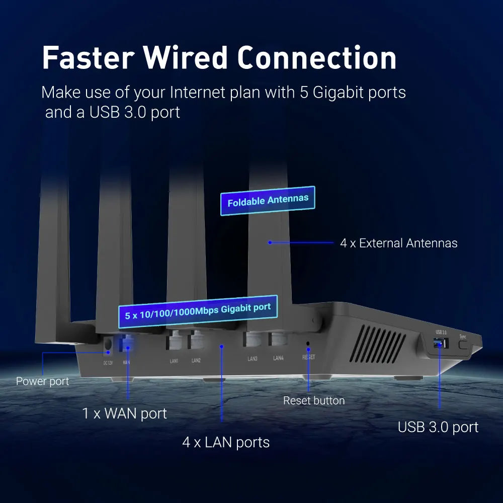 Max. 600Mbps (2.4Ghz) + 1200Mbps(5Ghz) Quick Wi-Fi Speeds