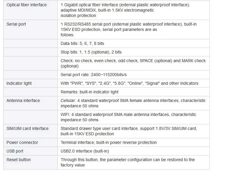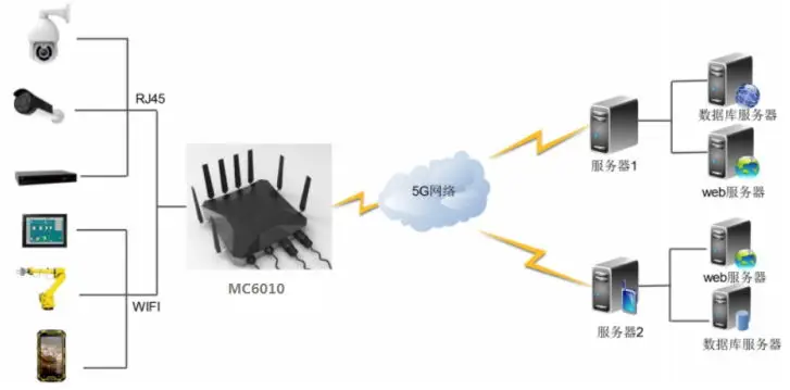 MC6010 is a 5G industrial CPE that uses public 3G/4G/5G networks to provide users with wireless long-distance big data transmission functions. The product uses high-performance industrial-grade 32-bit communication processors and industrial-grade wireless modules, with embedded real-time operating system as the software support platform, and provides 1 RS232 (or RS485), 1 Ethernet LAN, and 1 Ethernet WAN, 1 optical fiber interface and support WiFi function, can connect serial device, Ethernet device and WIFI device at the same time, realize data transparent transmission and routing function. This product has been widely used in the M2M industry in the IoT industry chain, such as smart grid, smart transportation, smart home, finance, mobile POS terminals, supply chain automation, industrial automation, smart buildings, fire protection, public safety, environmental protection, meteorology , Digital medical treatment, remote sensing survey, military, space exploration, agriculture, forestry, water affairs, coal mine, petrochemical and other fields.