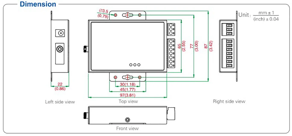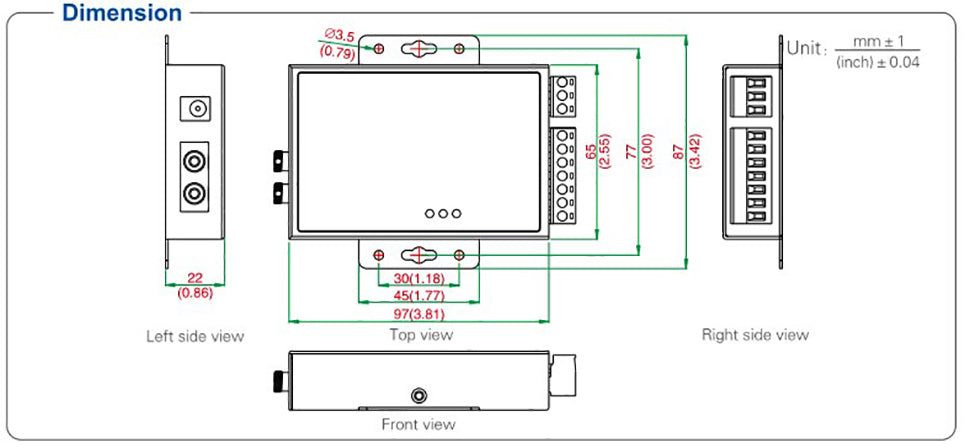 The fastest transmission rate for RS-232 can be 115.2Kbps, and for RS-485/422 can be 460Kbps. Ports with different electronic standards can be mixed and matched to use; it is without problem to connect RS-232 devices with RS-485/422 devices. This is a good replacement of RS-232 to RS485/422 converter, which with EMI/RFT features.