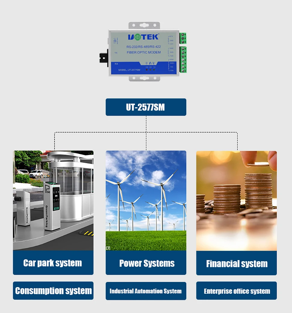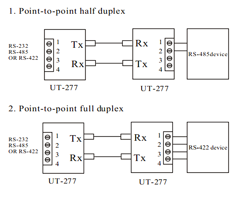 UT-2577SM supports two signal data transmission: transmit and receive data. At the same time, it is with RS-485/422 data transmission