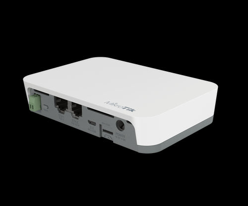 MikroTik IoT LR8 Gateway 2.4 GHz wireless, Bluetooth, LoRa, 2x 100Mbps Ethernet ports, 802.11 b/g/n dual-chain, PoE-in and PoE-out Micro-USB, RouterOS
