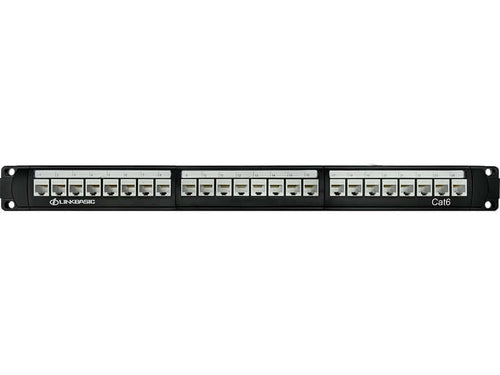 Linkbasic 24 Port Cat6 Rack Mount Patch Panel, manufactured from electrostatic powder-coated steel for enhanced corrosion resistance, 100 x 60 x 510mm