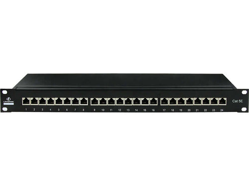 Linkbasic 24 Port Cat5e Shielded Rack Mount Patch Panel, manufactured from black electrostatic powder-coated steel for enhanced corrosion resistance