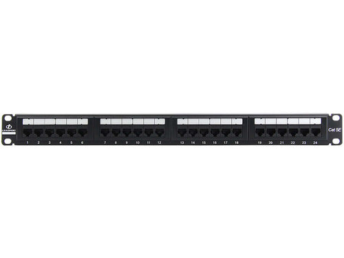 Linkbasic LB-PP24 24 Port Cat5e Rack Mount Patch Panel, manufactured from black electrostatic powder-coated steel for enhanced corrosion resistance