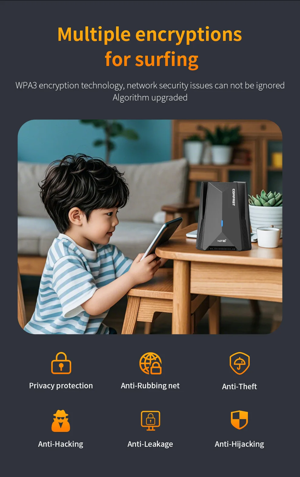 ● Comprehensive 6500Mbps wireless speed, unleashing fast speed and making the Internet more enjoyable