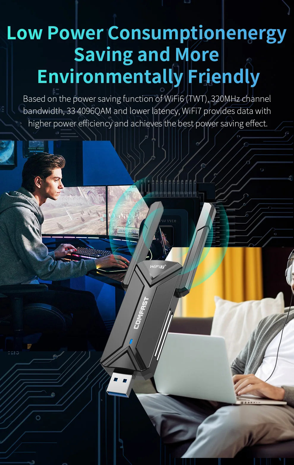 Comfast USB WiFi7 Gigabit Network Card 6500Mbps USB Wi-fi adapter 2.4G – Let's Fibre Technologies