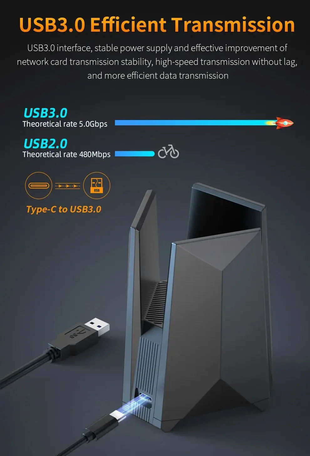 CF-987BE:Wifi 7 USB3.0 Driver Free BE6500 2.4G/5G/6GHz Tri-band 2 *4 dbi Antennas RTL8912AU WPA3 Windows 10/11