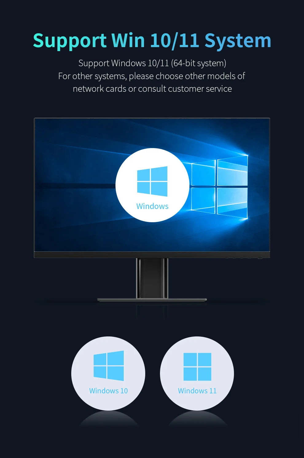 CF-983BE and CF-987BE are a BE6500 WiFi7 dual-antenna driver-free wireless network card, which automatically installs the driver; 6500Mbps high-speed rate, supports 2.4&5&6GHz tri-band; dual-antenna design, improved signal penetration ability; WiFi7 technology, network delay and channel interference are greatly reduced , you can enjoy a smooth gaming experience in highly crowded environments and meet users’ high-end network needs!