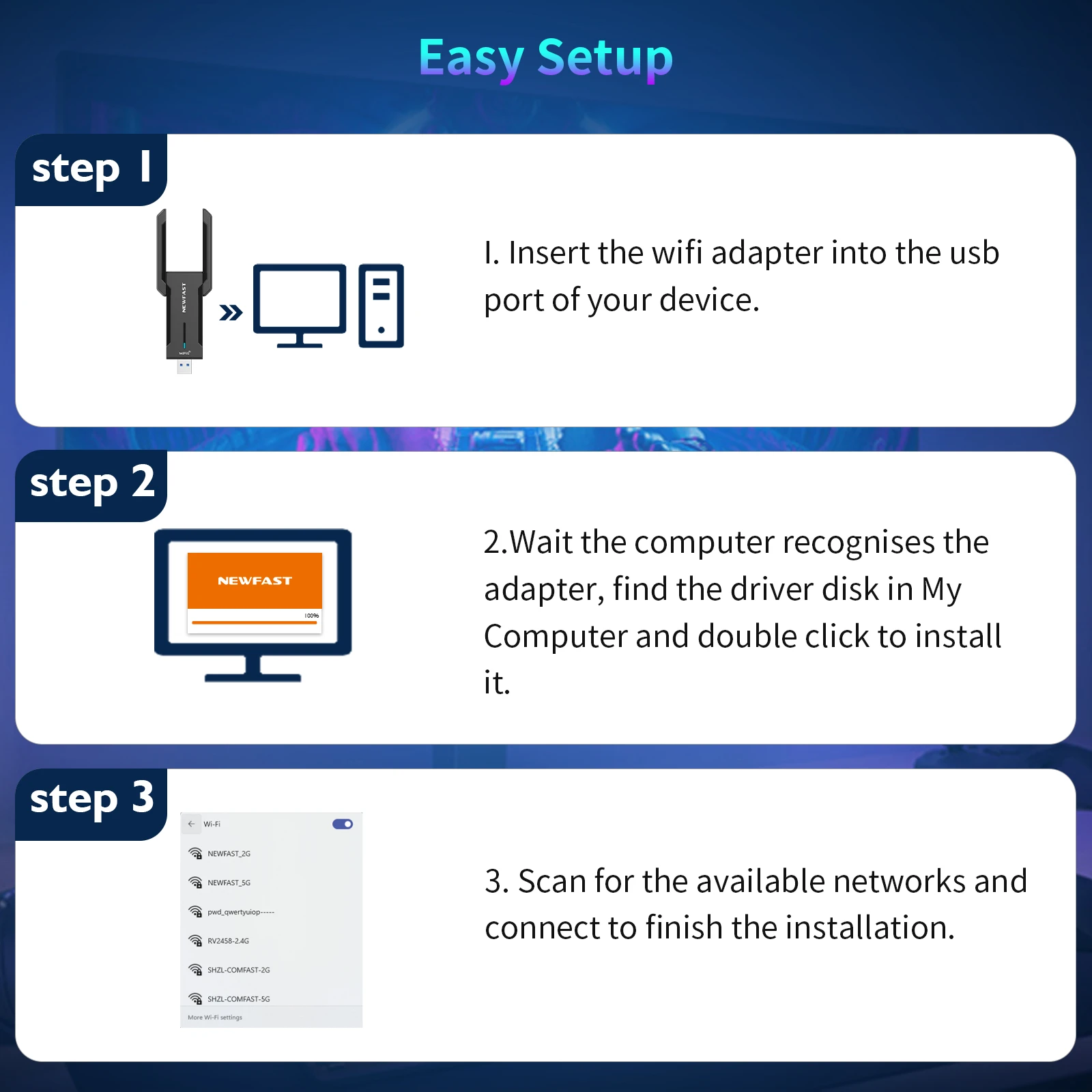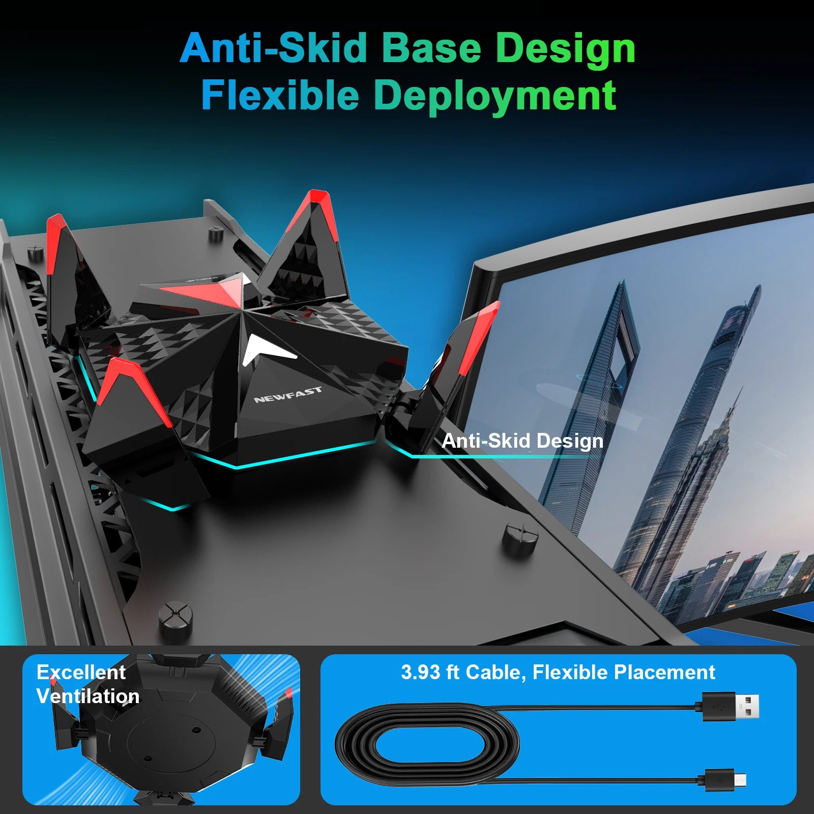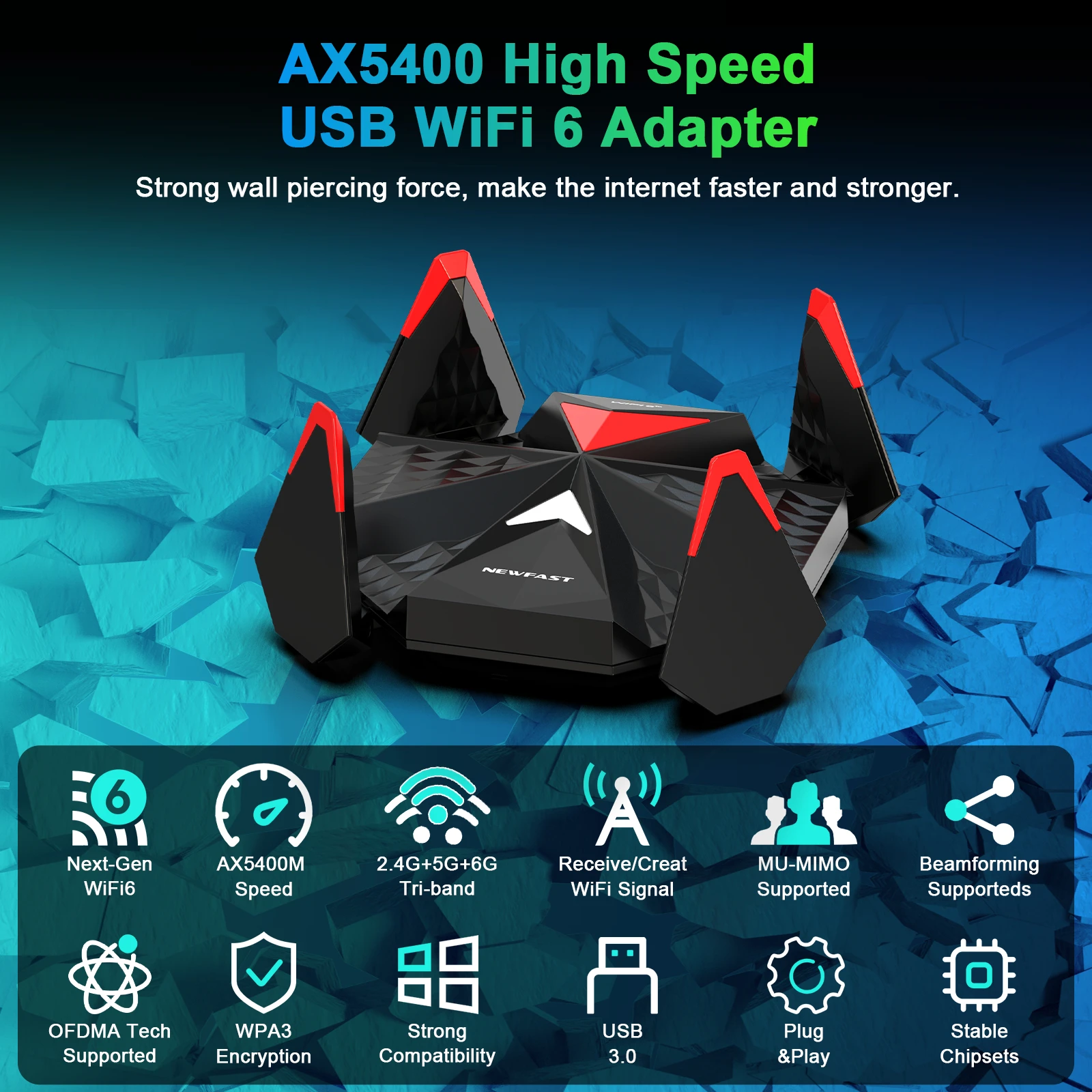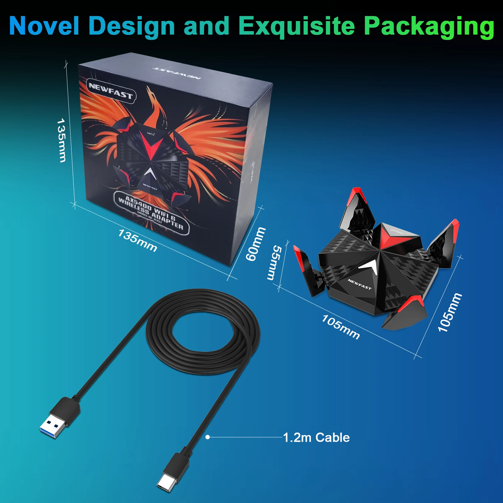 Newfast Adapter Wifi 6 Usb 3.0 Adapter AX5400 6G/5G/2G High Gain Antennas Wifi6 for PC Cle Network Card Receiver Extension Cable