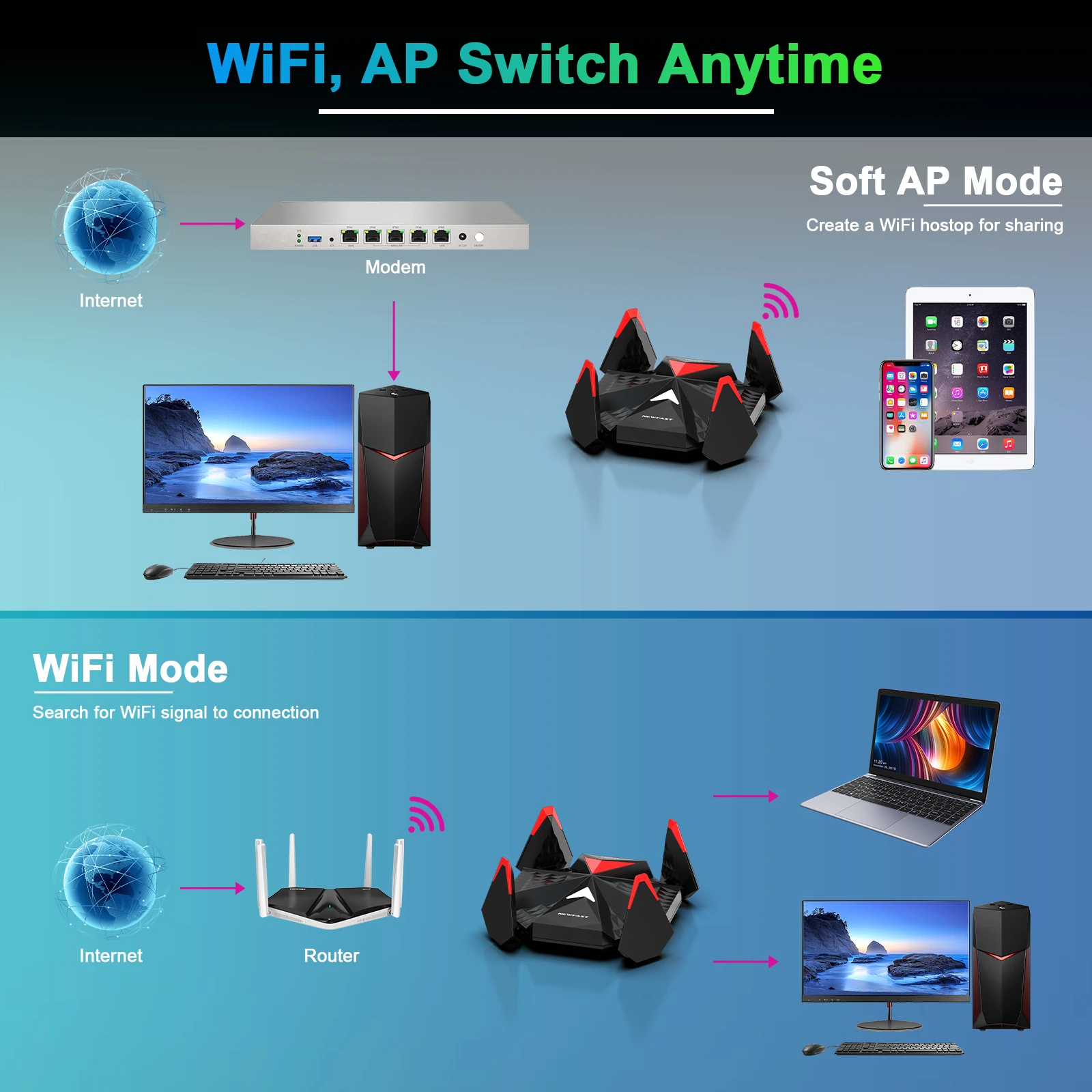 Wifi 6 AX5400 Speed 2.4G+5G+6G Tri band Receive /Create wifi signal