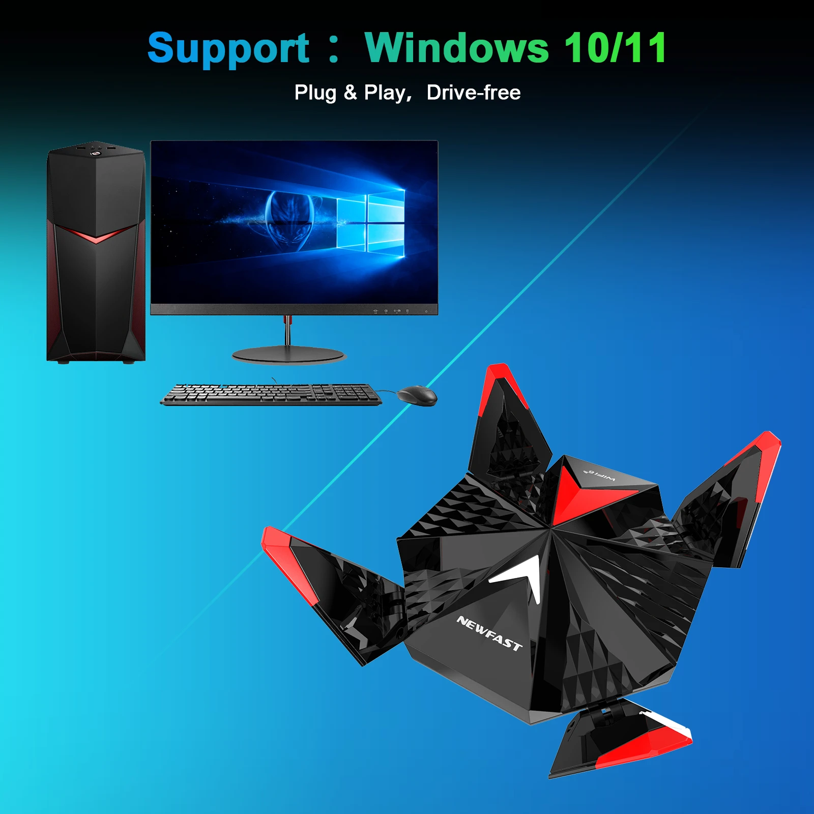 The NF-U357 is a drive-free gaming network card that supports WiFi6E. The built-in driver installs automatically; the tri-band 5374Mbps high speed, network latency and channel interference are greatly reduced, allowing the card to enjoy a smooth gaming experience even in highly congested environments!