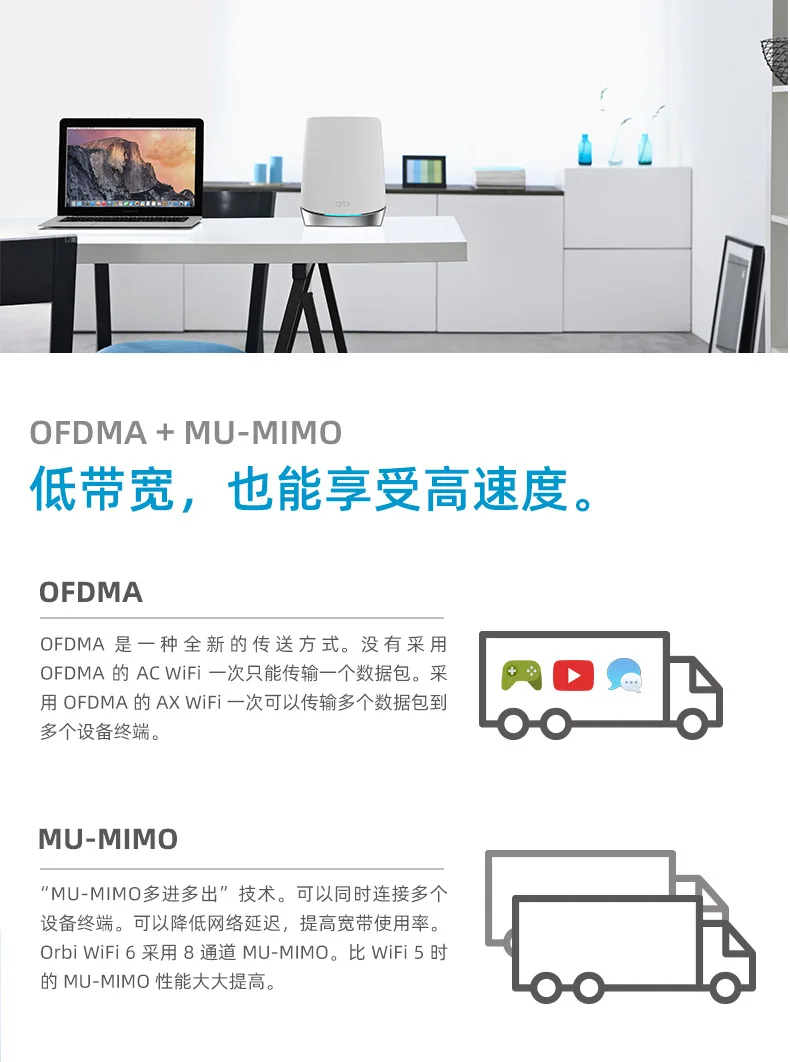 - Tri-Band Technology: Uses three Wi-Fi bands (one 2.4GHz, two 5GHz) for faster speeds and less interference, with one band dedicated for backhaul (router-to-satellite communication).