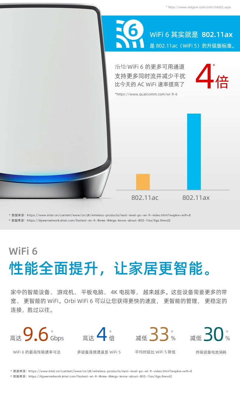 Orbi Tri-band Mesh WiFi System RBK7621 2-pack (Router + 1 Satellite), 3Gbps, Covers Up To 5,000 Sq. Ft, 3 Wi-Fi bands (1 2.4GHz, 2 5GHz)