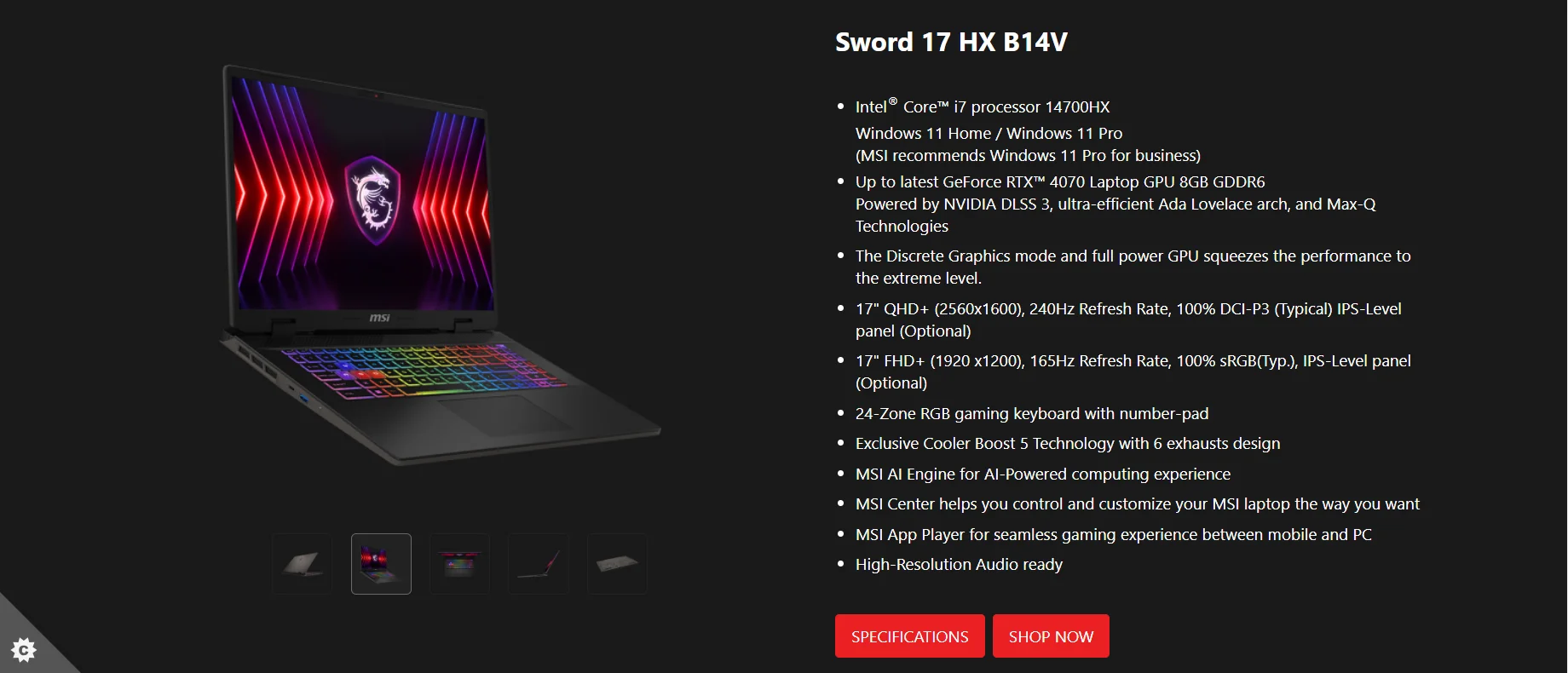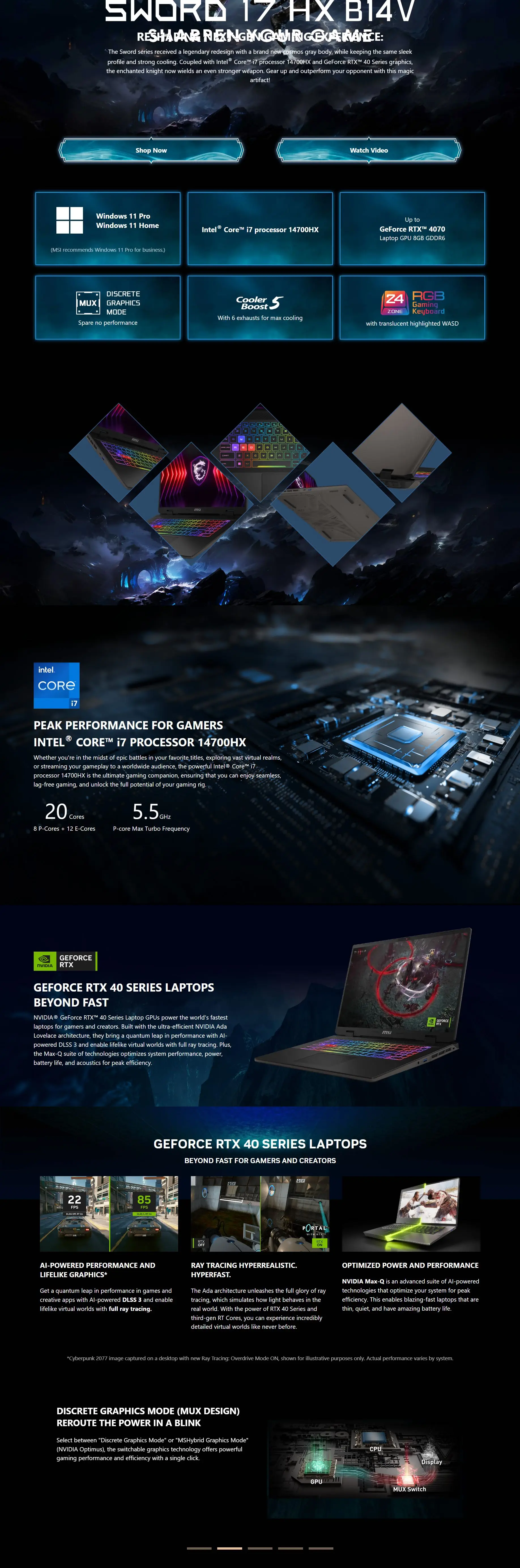 Original MSI Sword 17 HX Gaming Laptop Customizable 17inch QHD 240Hz Netbook I7-14700HX+RTX4070 High Performance Gaming Notebook