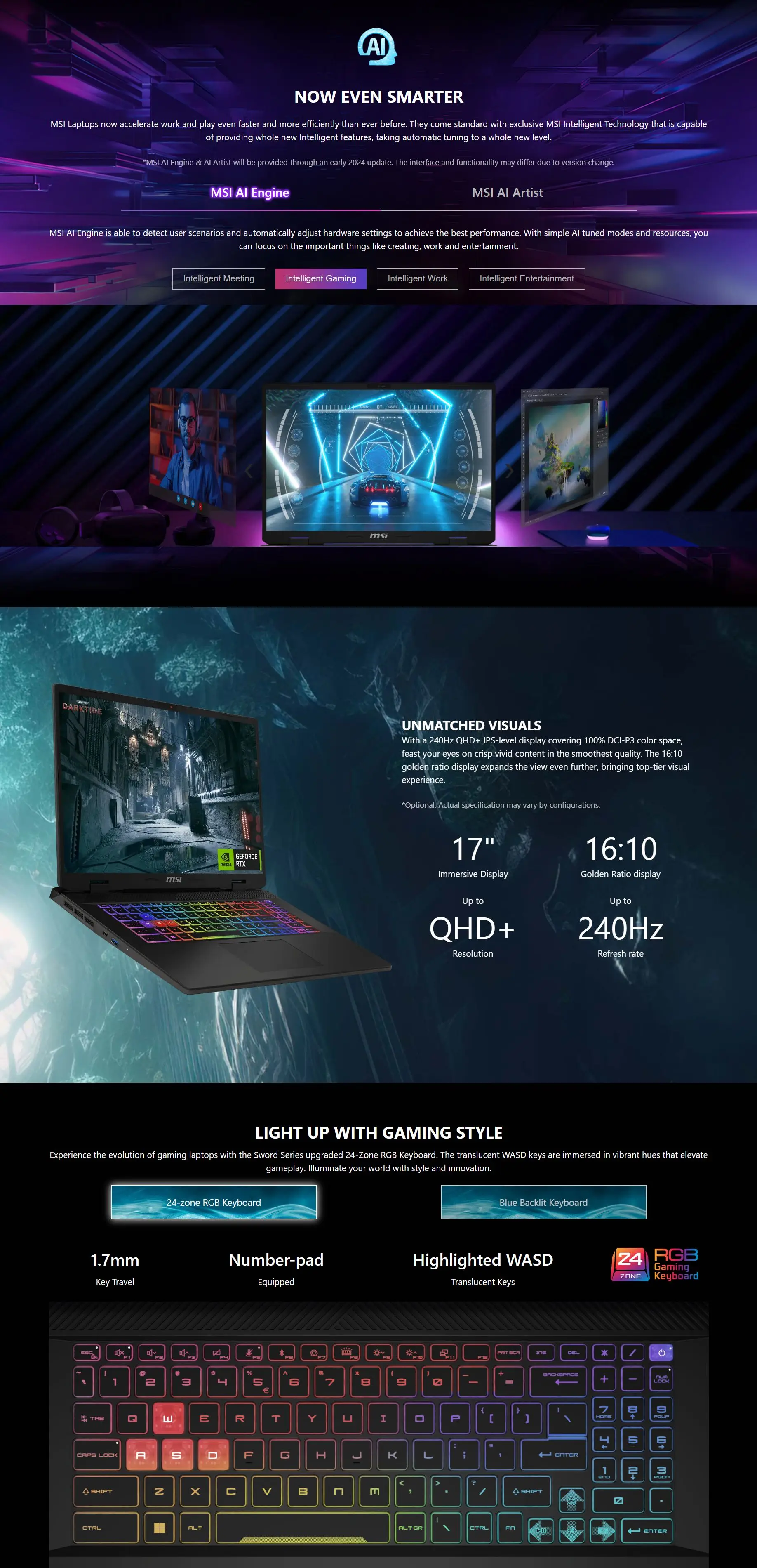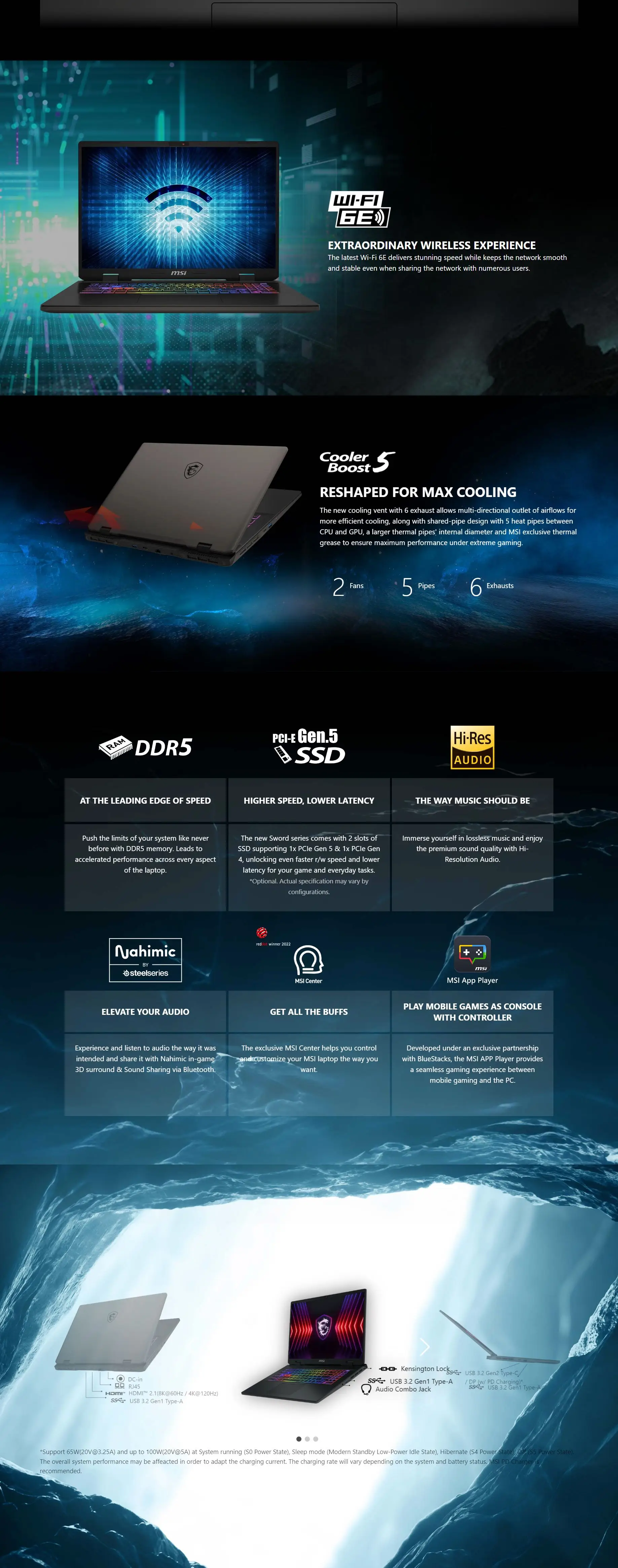BT5.3,Wi-Fi 6E AX211,24-Zone RGB Gaming Keyboard,HD type (30fps@720p) |