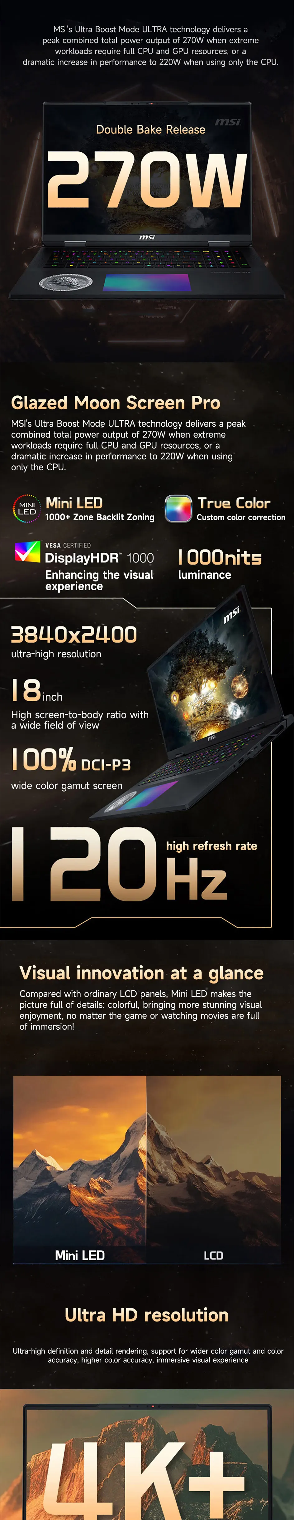 18" 4K Mini LED 120Hz IPS UHD+,3840*2400,True Color 100% DCI-P3, 1000 nits brightness,Display HDR 1000 |