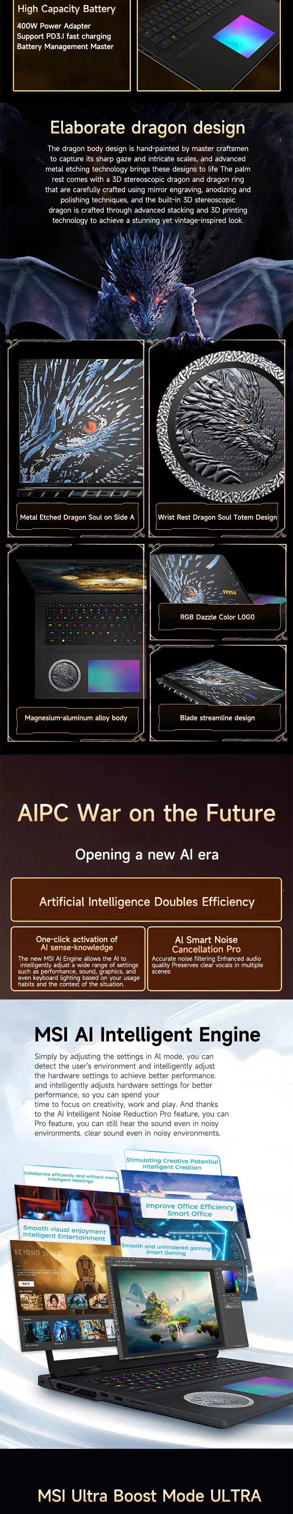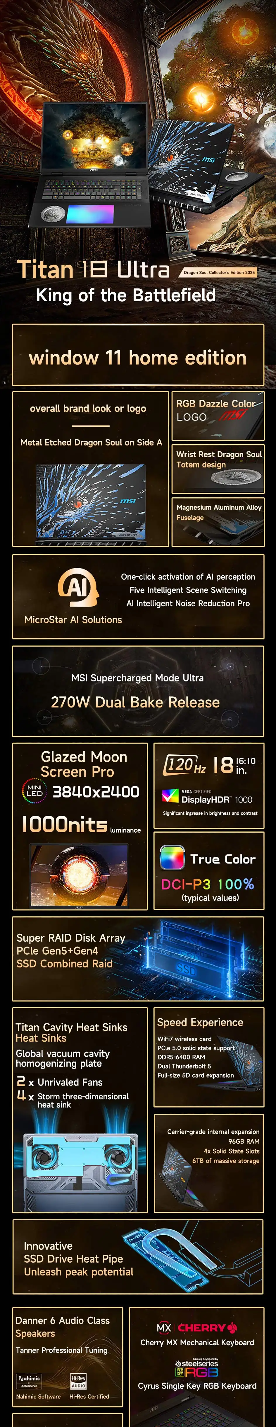2025 MSI Titan 18 HX Dragon Edition Norse Myth Gaming Laptop 18 Inch UHD 4K Mini LED 120Hz Ultra 9-285HX 96GB 6TB RTX5090 PC
