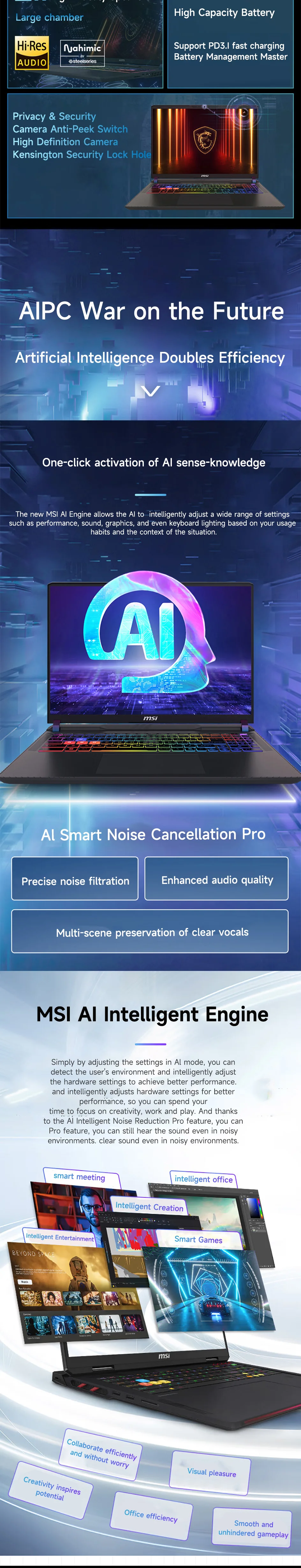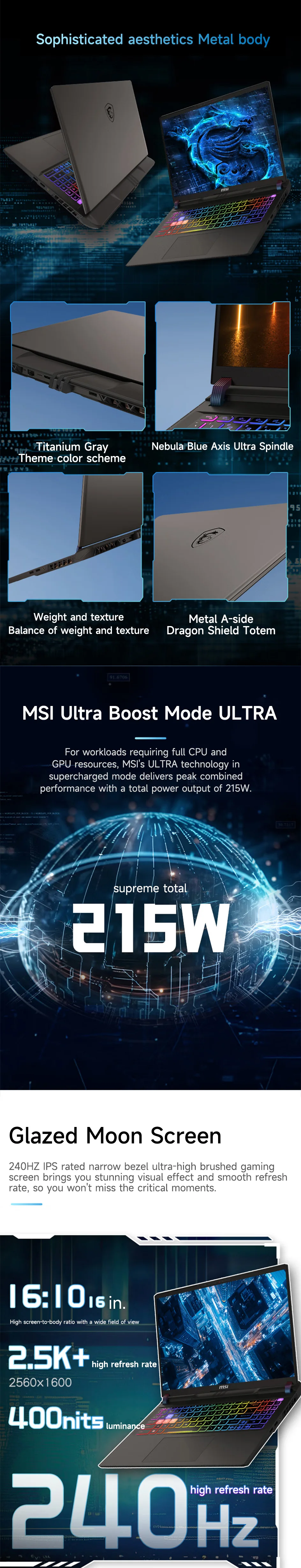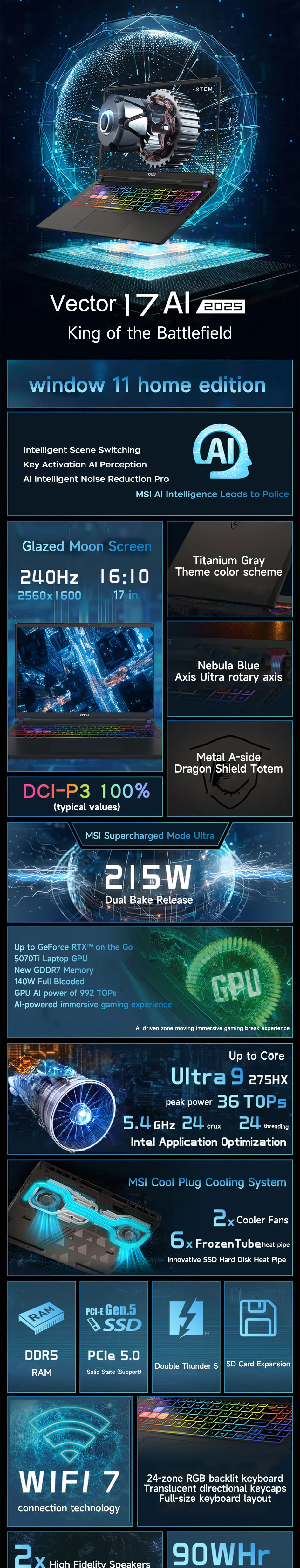 2025 MSI Vector 17 HX AI Gaming Laptop 17 Inch 2.5K QHD 240Hz IPS Screen Notebook Ultra 9-275HX 64GB 2TB RTX5080 Netbook Computer