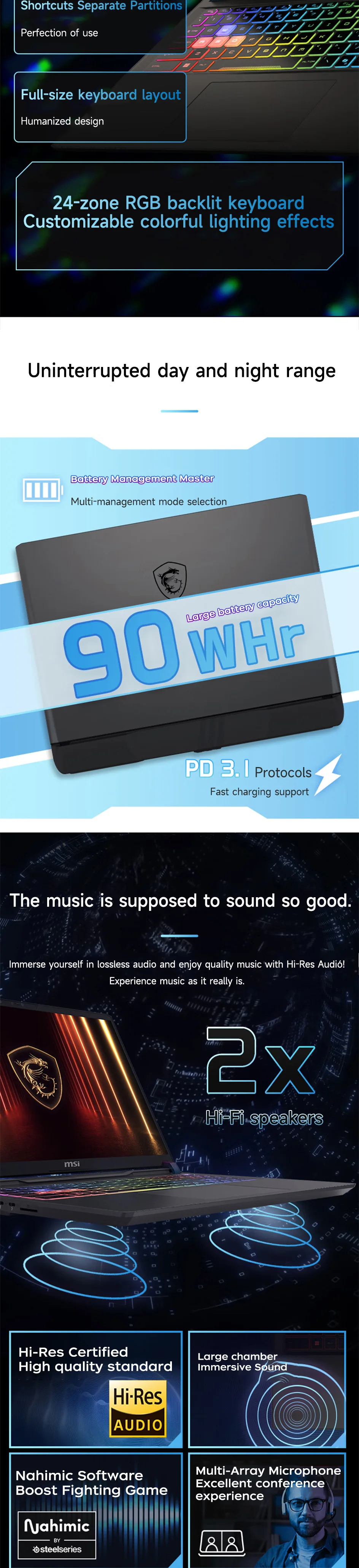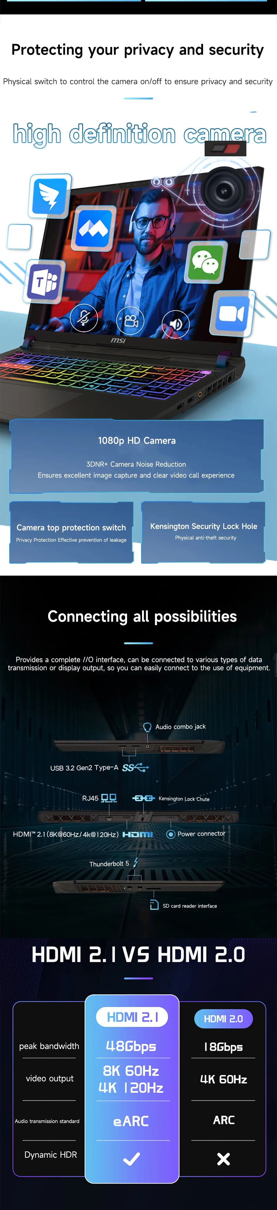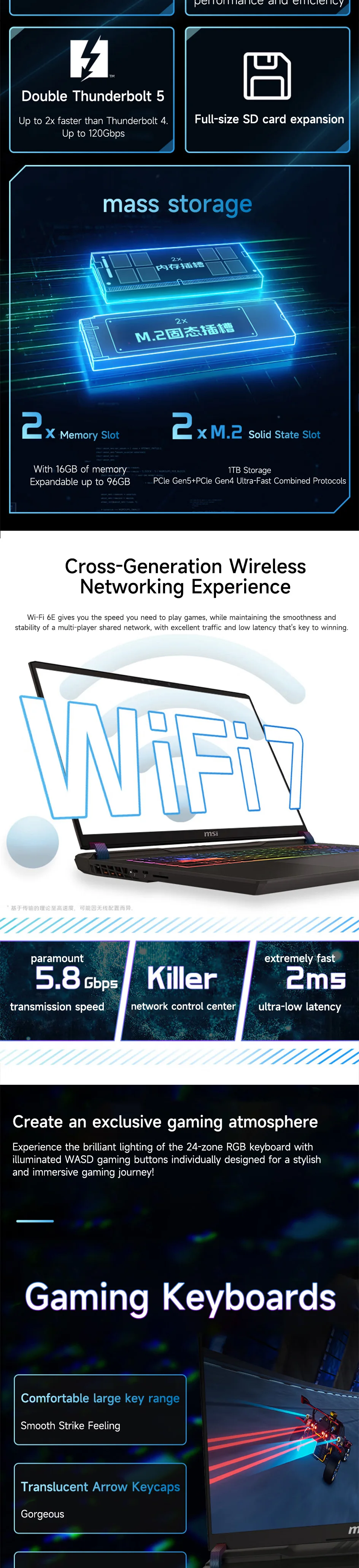 2025 MSI Vector 17 HX AI Gaming Laptop 17 Inch 2.5K QHD 240Hz IPS Screen Notebook Ultra 9-275HX 64GB 2TB RTX5080 Netbook Computer