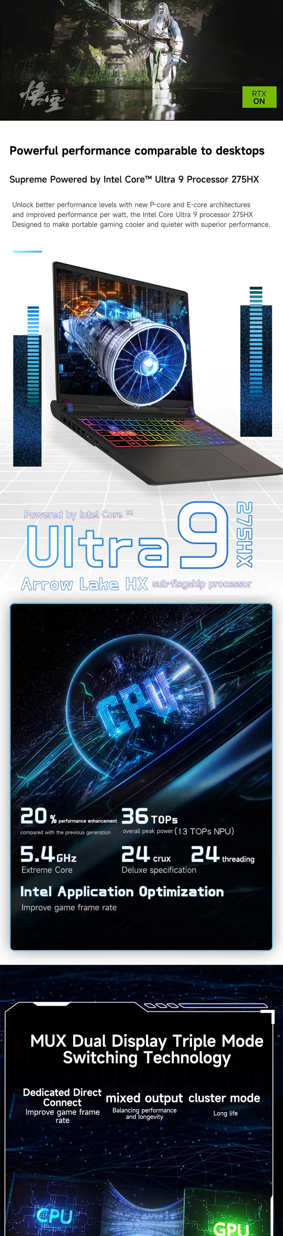 Ultra 9-275HX:The base Frequency is 2.7GHz, and the Turbo Frequency is 5.4GHz,24 core 24 thread |