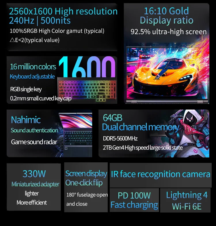 16 inches 2.5K/240HZ 500NITS brightness