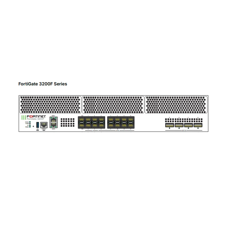 Fortinet Enterprise FortiGate 3200F Firewall 63Gbps IPS Throughput 70M Sessions 2x10GE/GE RJ45 Management Ports VPN Support FG-3200F