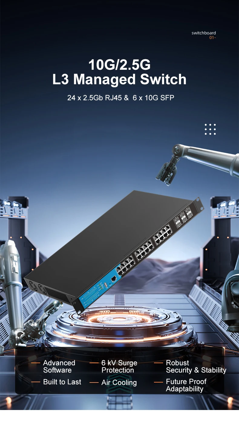 ✔ 24x 2.5GbE RJ45 Ports – Supports 10/100/1000/2500Mbps for desktops, servers, and IoT devices.