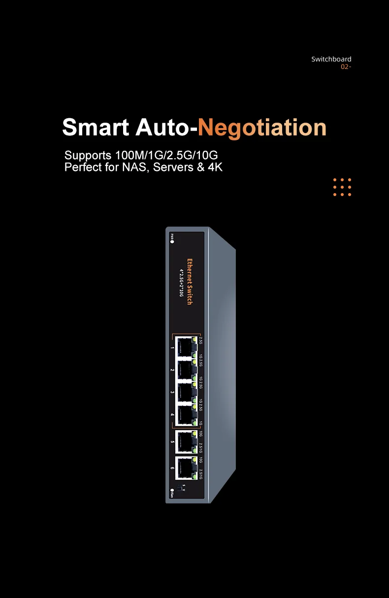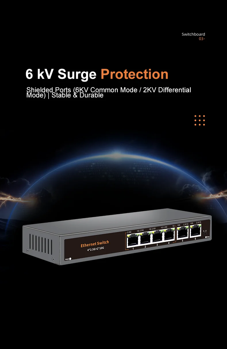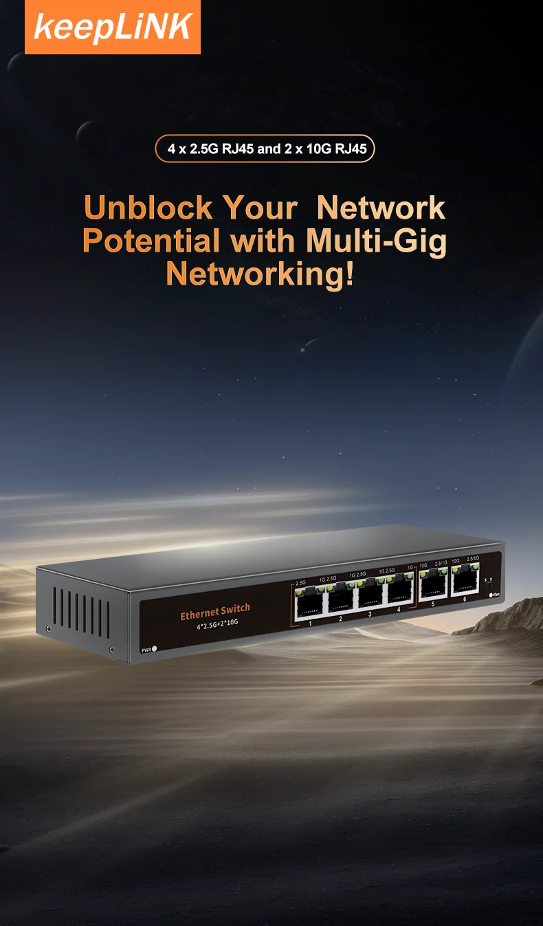 KeepLiNK 6-Port Multi-Gigabit Unmanaged Network Switch 4x 2.5Gb RJ45 + 2x 10Gb RJ45 Ports for High-Speed Data Networking 6XH-XT2
