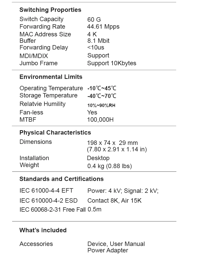 Switch Capacity: 60G