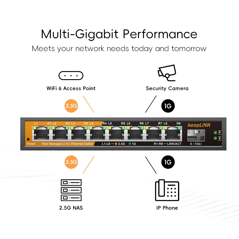 KeepLiNK 8-Port 2.5GbE Managed Ethernet Switch with 1*10Gb SFP+ Uplink – Let's Fibre Technologies