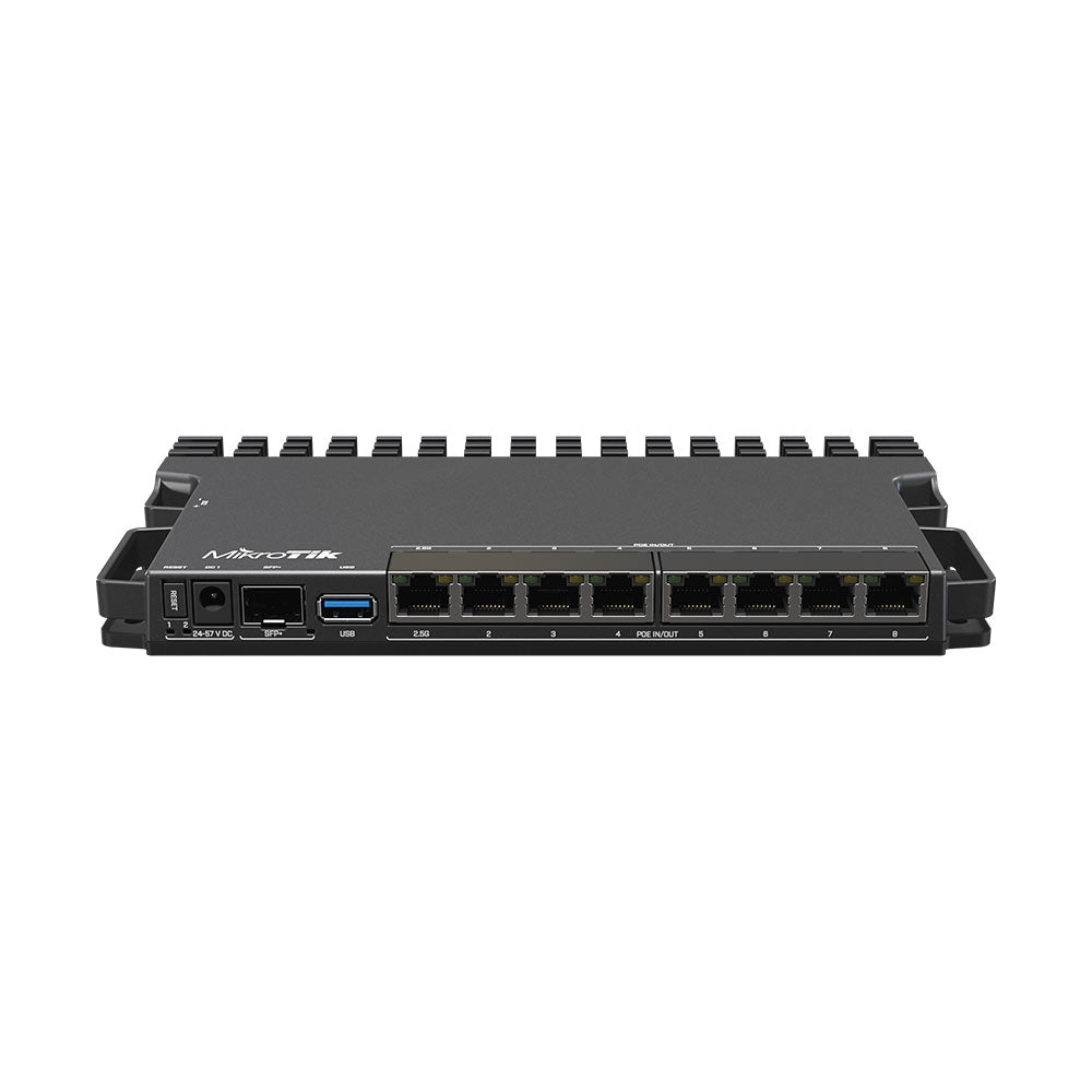 The MikroTik RB5009 series offers a range of high-performance, compact routers designed for various networking needs. The routers come with multiple Gigabit Ethernet ports, a 2.5 Gigabit Ethernet port, and a 10G SFP+ cage for fiber connectivity. All routers are also equipped with 1GB of RAM and 1GB of storage, providing nearly double the performance in CPU-heavy configurations compared to similar MikroTik models.