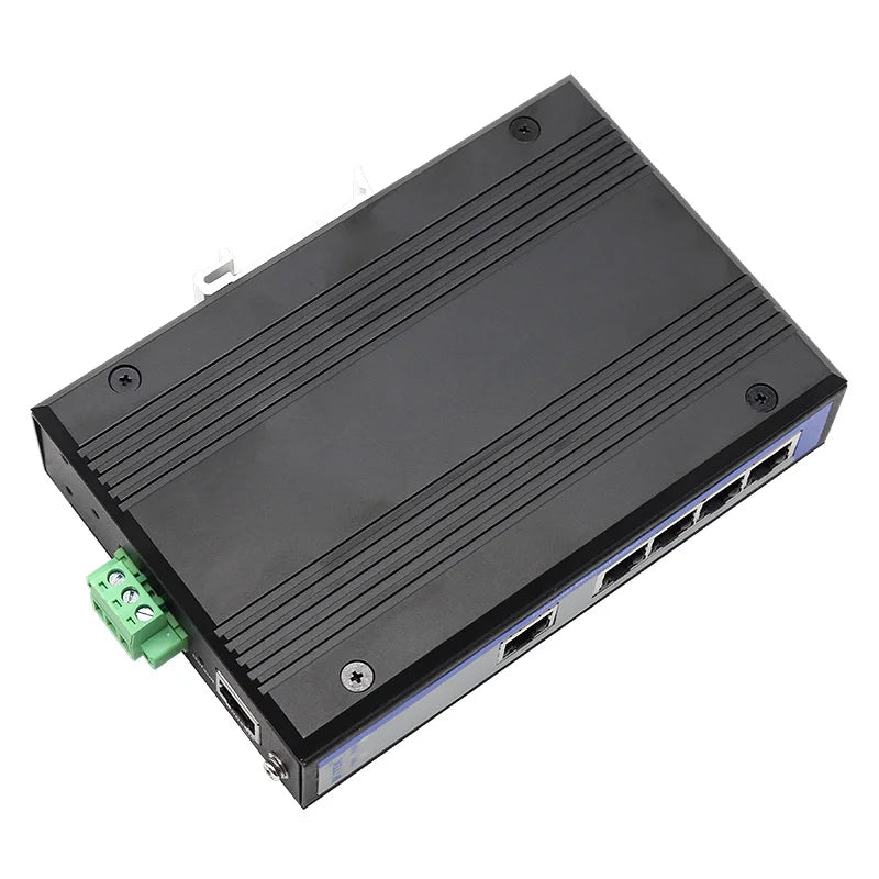 UT-6405M series is a 5-port 100M simple managed Ethernet switch. It provides fixed 4 10/100Base-T(X) Ethernet interface and 1 opto-electronic optional interface, which is plug-and-play; it provides one console port and supports CLI management; it adopts low power consumption and fanless design to ensure no noise interference, and also supports -40~85°C operating temperature and good EMC electromagnetic compatibility performance to ensure stable operation in harsh industrial environment. It provides a safe and reliable solution for factory automation, intelligent transportation, video surveillance and other industrial applications to set up a fast and stable network terminal access network.