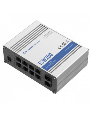 Teltonika 8 Port Unmanaged Industrial Gigabit Switch - Features (802.3af/at - Max 30W per port), 2x SFP ports, PSU Not Included - Add Ac-PSU-48v-120w