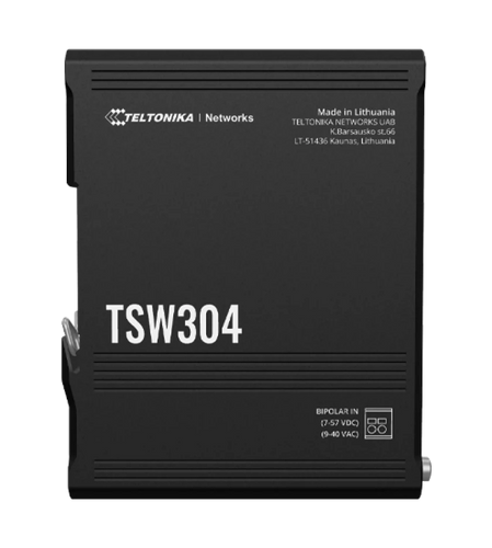 Teltonika Unmanaged L2 Gigabit Switch 4x Gbit ports, Supports auto MDI/MDIX crossover, 7 - 57 VDC, 9-40 VAC, DIN rail mount, No PoE OUT, PSU Not Incl
