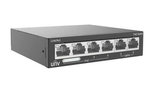 UNV - 4-Port PoE Switch, Supports Up to 250m transmission, Uniview 6 x 10/100Mbps ports support PoE, 2 Uplink port PoE