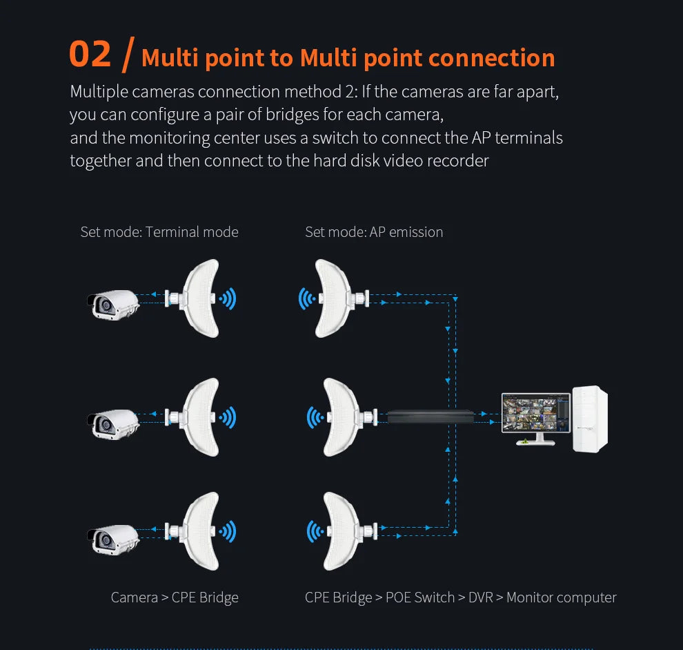 Long Range Wireless Transmission CPE: Point to Point MAX. 11KM
