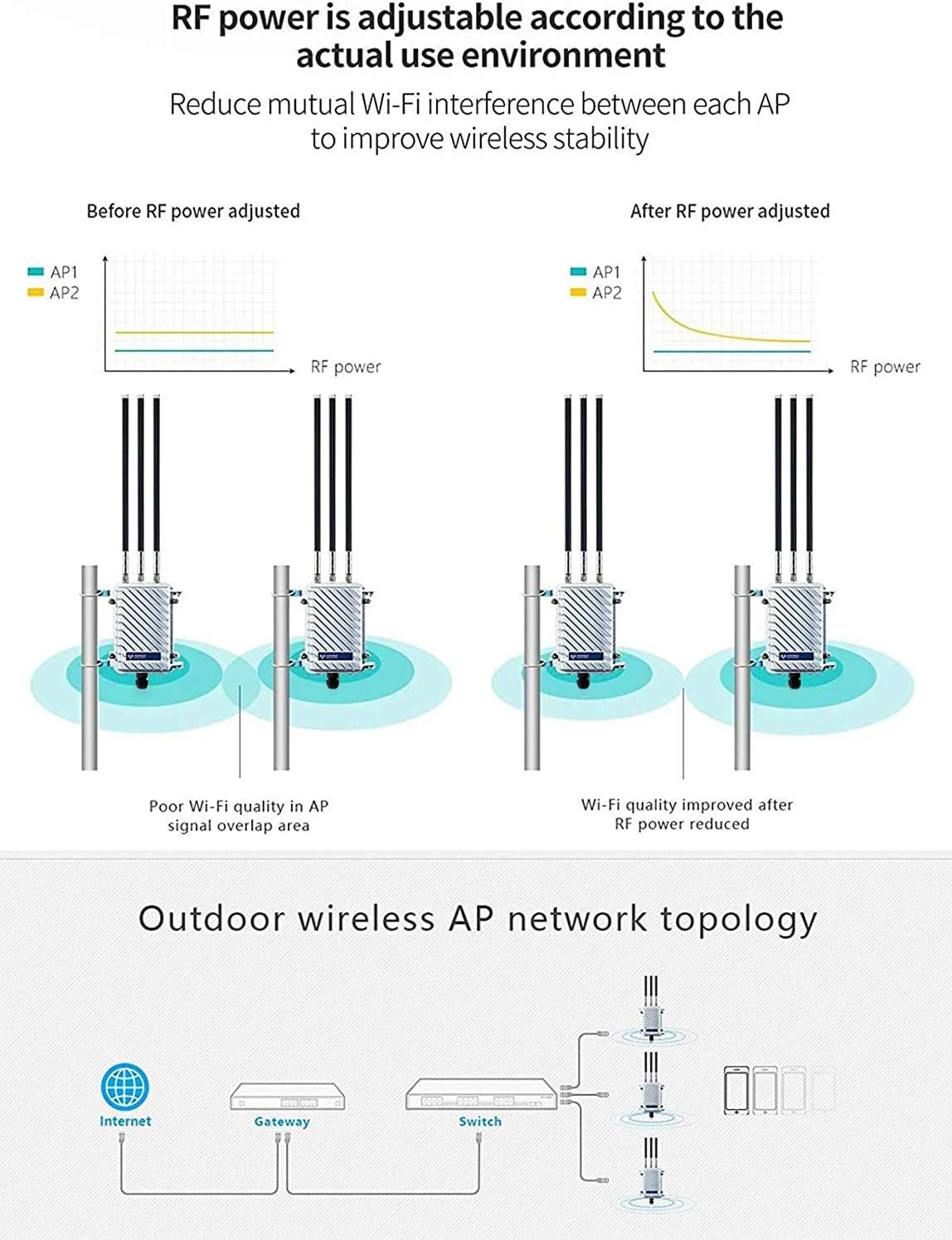 5. Support full frequency and more than 200 channels if need, to avoid the Wi-Fi Interference, guarantee the stable wireless connection. Meantime, it support Power over Ethernet, support IEEE 802.3af PoE, 48V, easy in setup even no power socket nearby