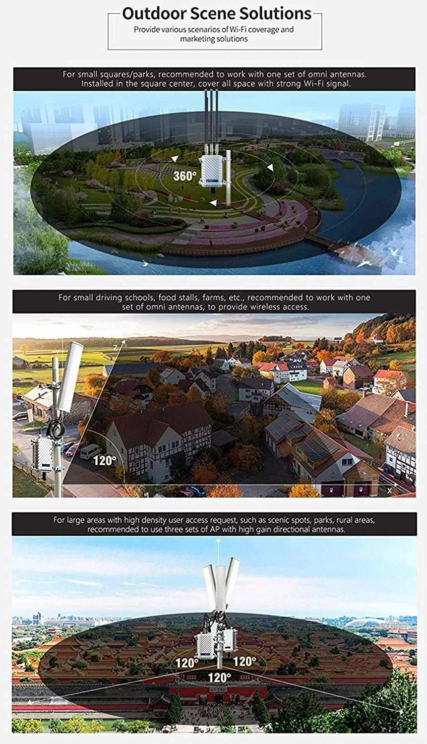 2. 2.4G 300Mbps and 5G 450Mbps high rate, 500mW high power design, with N type antenna connector, for wider outdoor wifi range and more users