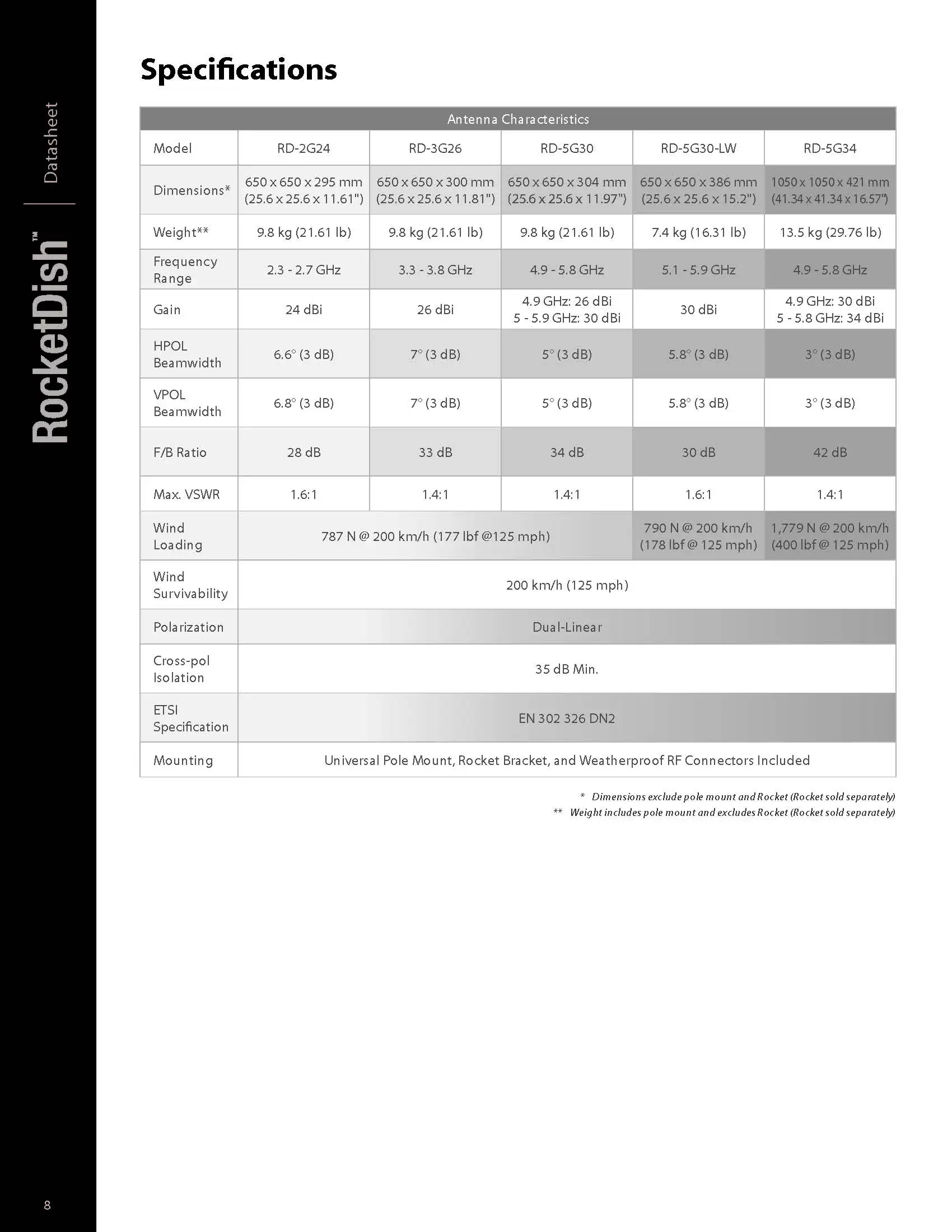 Mounting Universal Pole Mount, Rocket Bracket, and Weatherproof RF Connectors Included