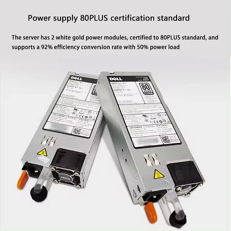 Power supply 80PLUS certification standard .The server has 2 white gold power modules, certified to 80PLUS standard, and supports a 92% efficiency conversion rate with 50% power load.