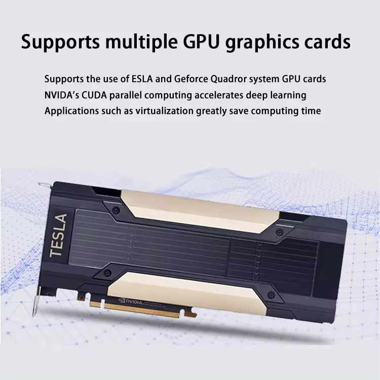 Supports multiple GPU graphics cards Supports the use of ESLA and Geforce Quadror system GPU cards NVIDA's CUDA parallel computing accelerates deep learning Applications such as virtualization greatly save computing time.