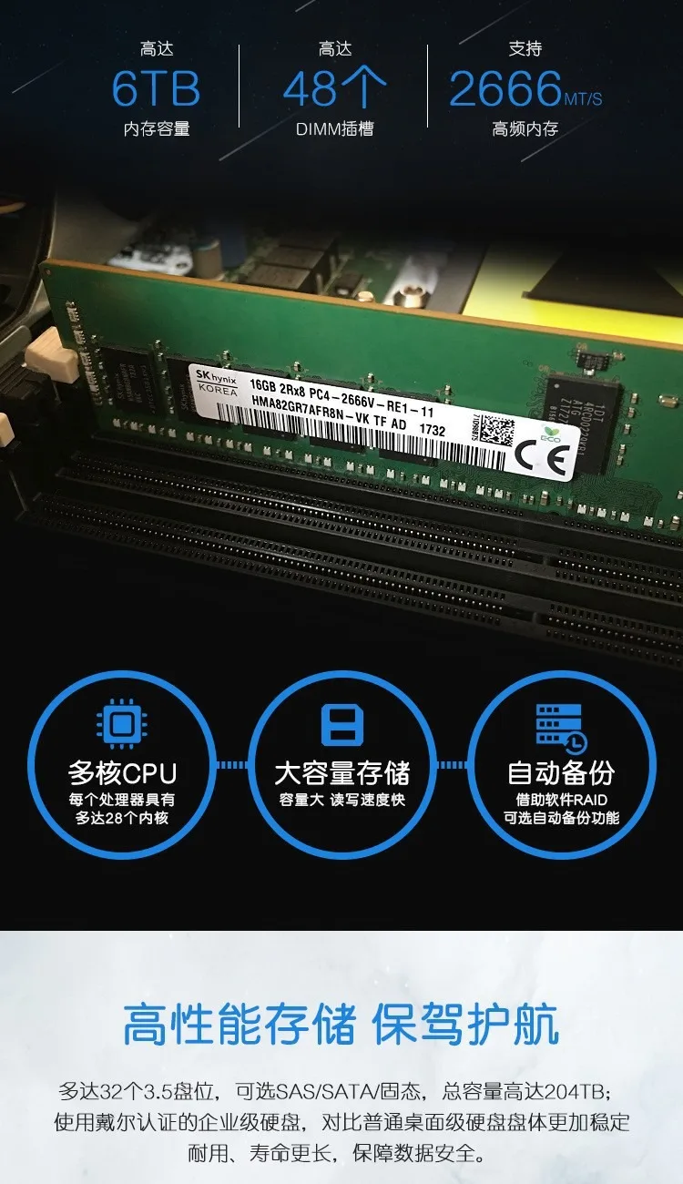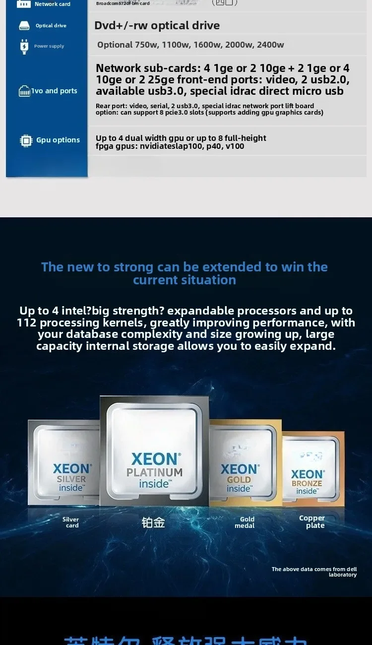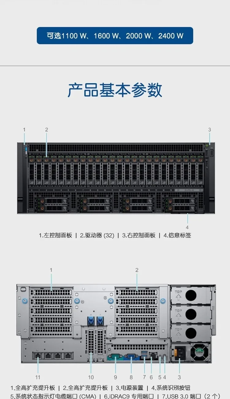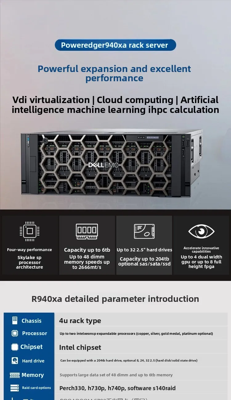 | DL:Dell-R940xa-8270*2/128G/960GB-SSD-SATA-RI*1/1600W | Dual Intel Xeon Platinum 8270 processors, 128GB RAM, 960GB SSD SATA RI, 1600W PSU |