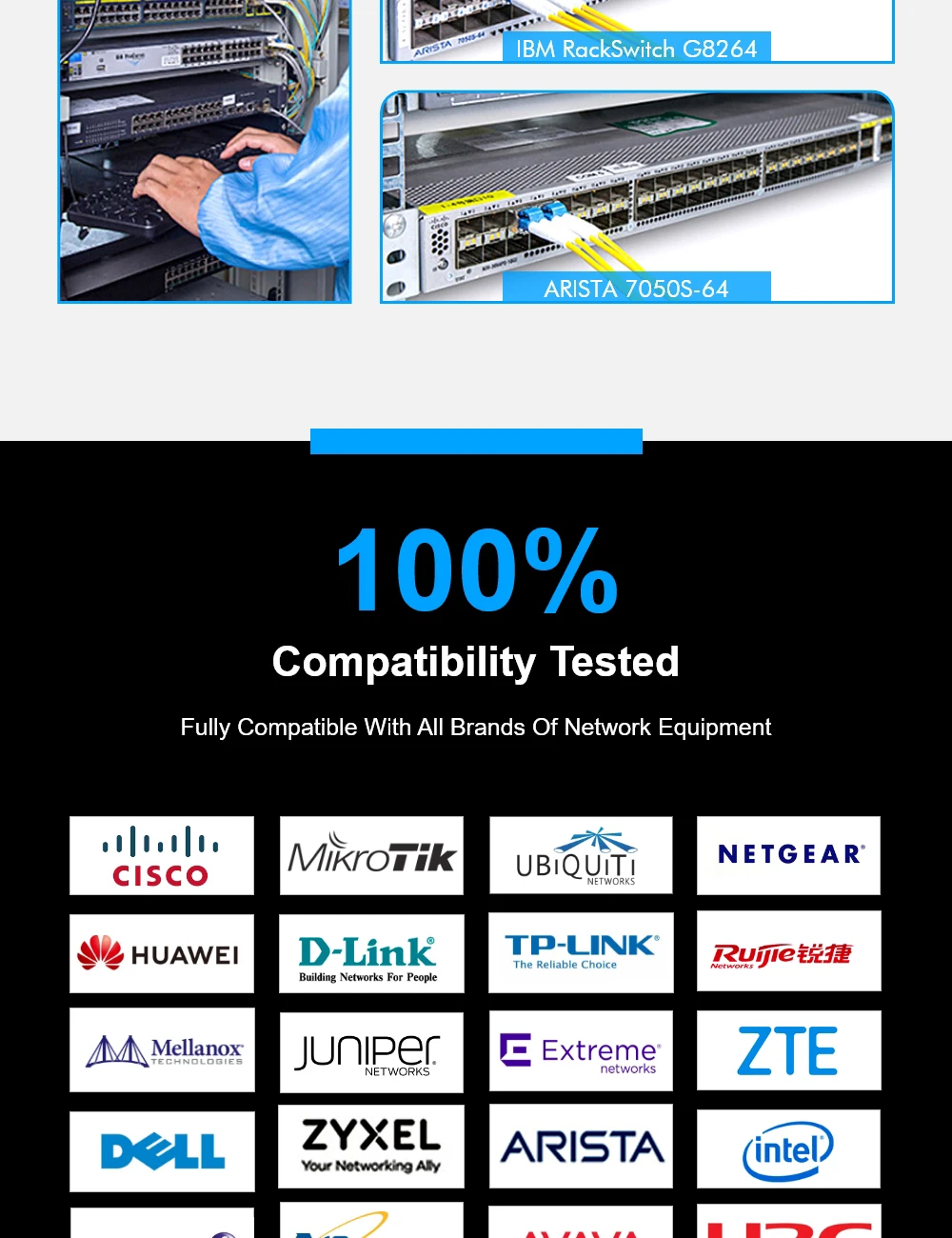 Compatible For DELL/Exterme/Huawei/Cisco/Zyxel/Mikrotik/Ubiquiti/TP-Link/Netgear/Juniper/Mellanox.... Fiber Optical Equipment/Switch/Fiber Card